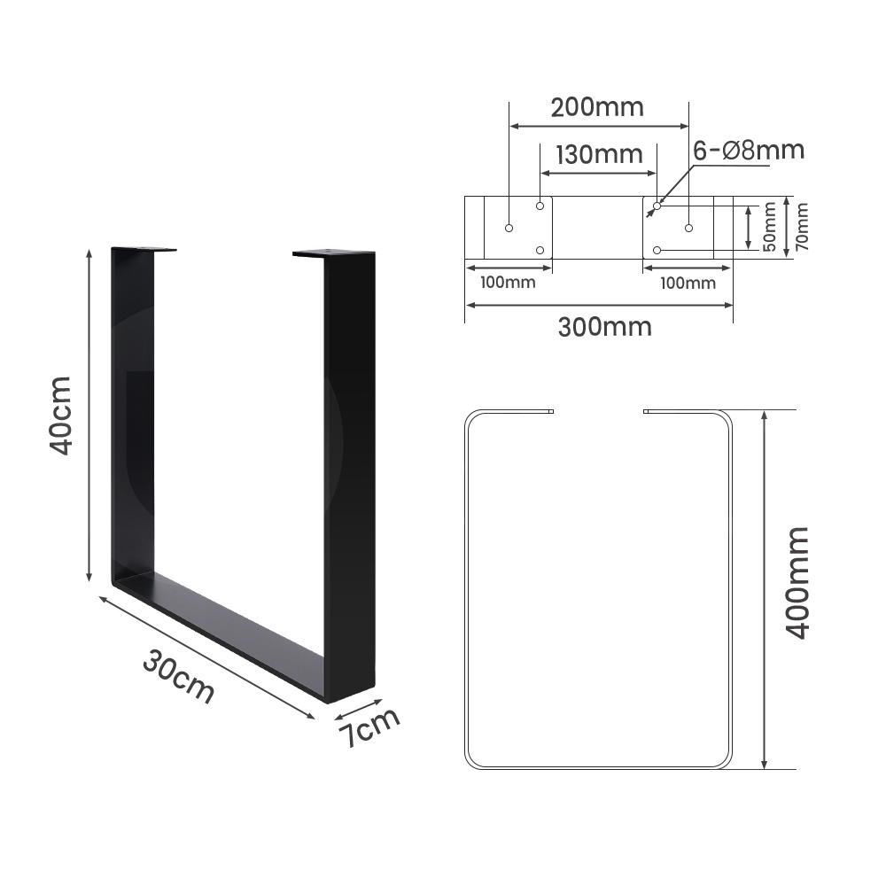 Furb's table legs in modern and industrial design allow you to customise your table, as well as restyling your interior d¨¦cor for your urban home. Furb's table legs are made of premium iron with 71mm thick tubes, reliable and designed for long-term use. Our table legs have a strong frame of 200kg weight capacity, They also come with leg protectors which can be attached to each leg for increased stability and prevent scratching your floor. The pre-drilled holes are designed to assist installation to your favourite table top. The surface is coated in matte black and are rust-resistant. The table legs are widely used for coffee tables, bedside tables, dining tables, bench and any kind of furniture that you'd like to restyle and DIY.
