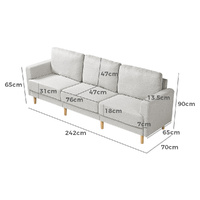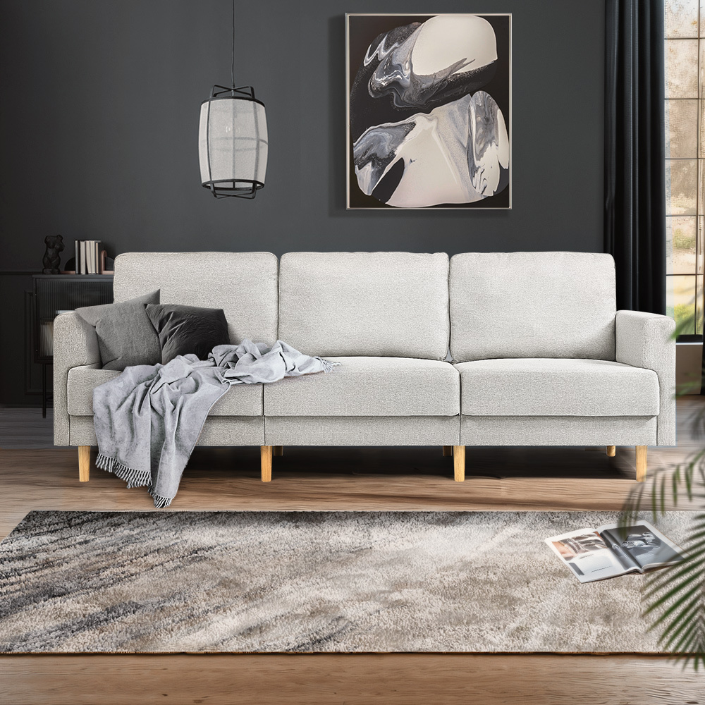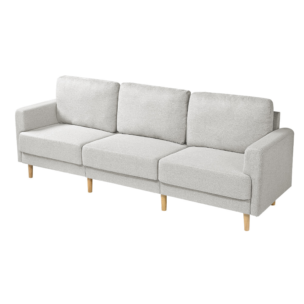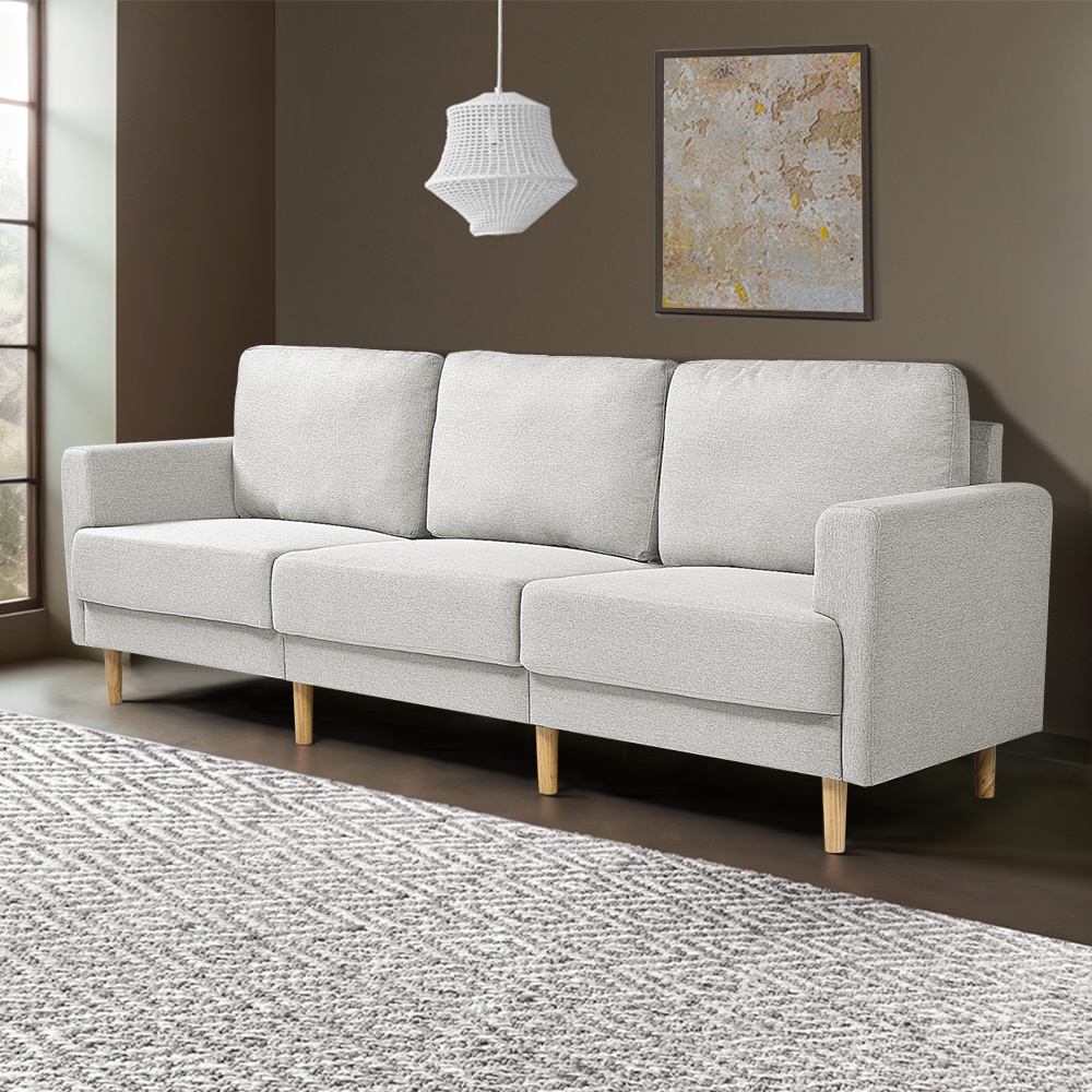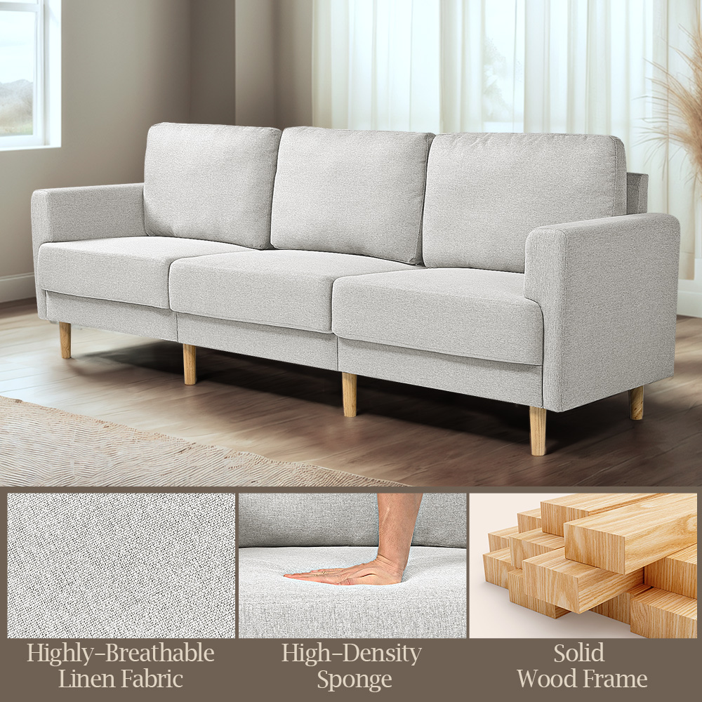 This sofa is crafted with highly breathable linen fabric, ensuring comfort and a cool seating experience. The cushions are filled with high-density sponge, providing exceptional support and maintaining their shape over time. Built with a solid wood frame, this sofa offers sturdy and durable construction, making it a reliable addition to any living space.