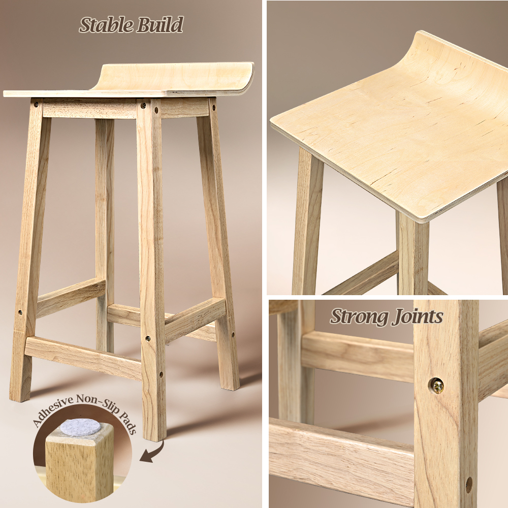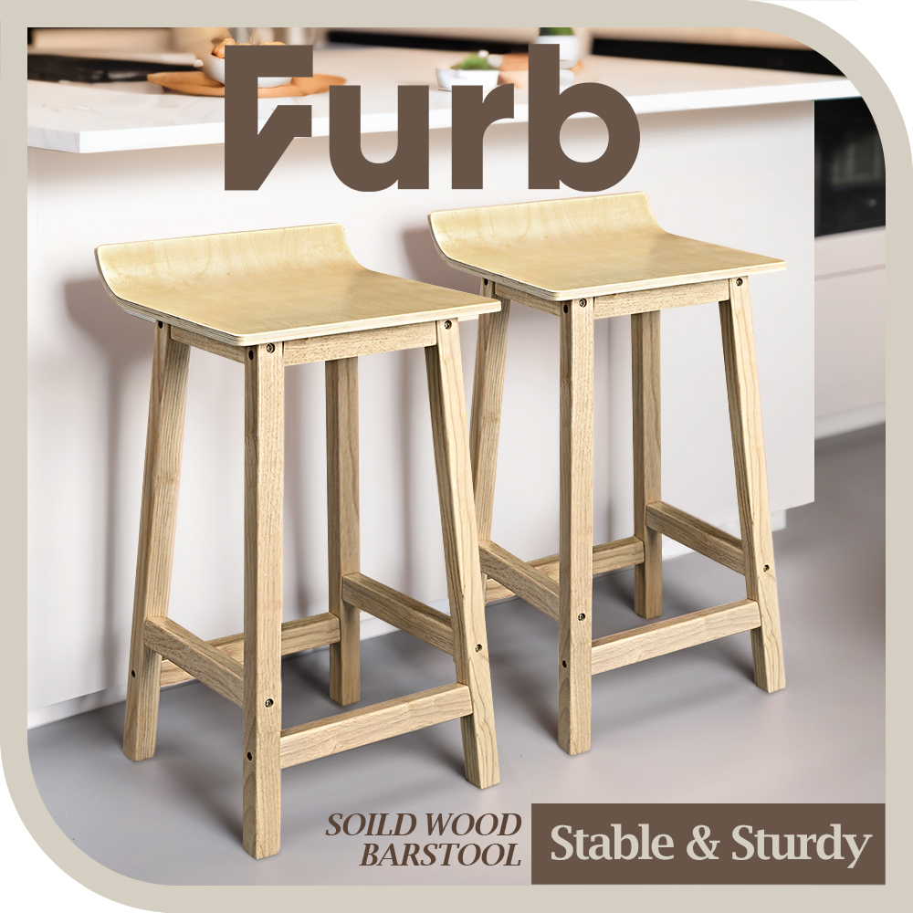 Furb Kitchen Wodden Bar Stools x 2 Dining Chairs Natural