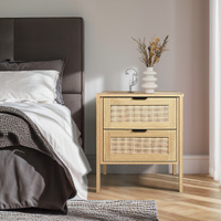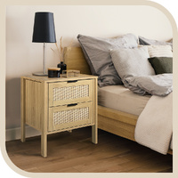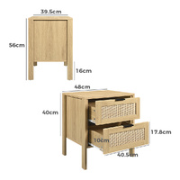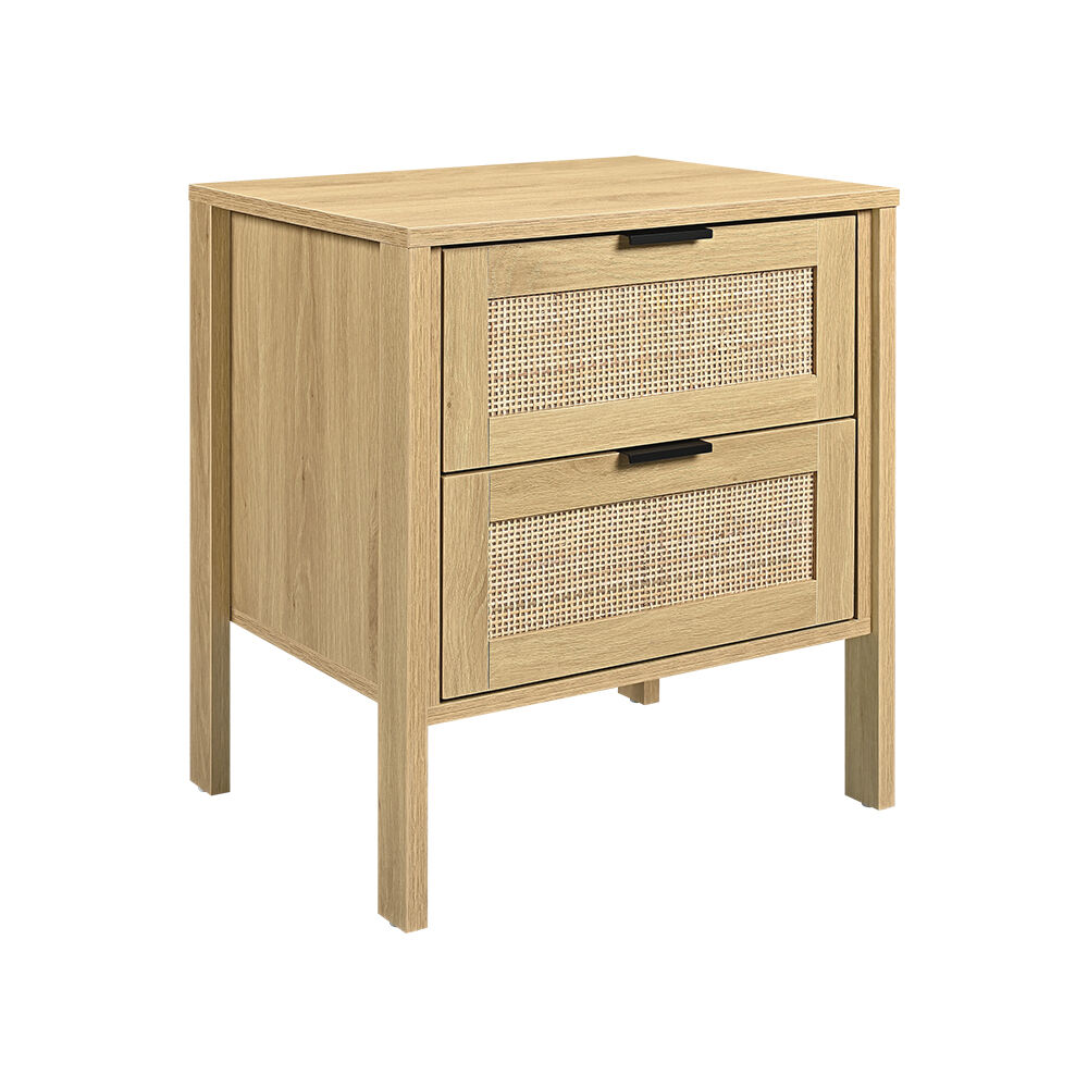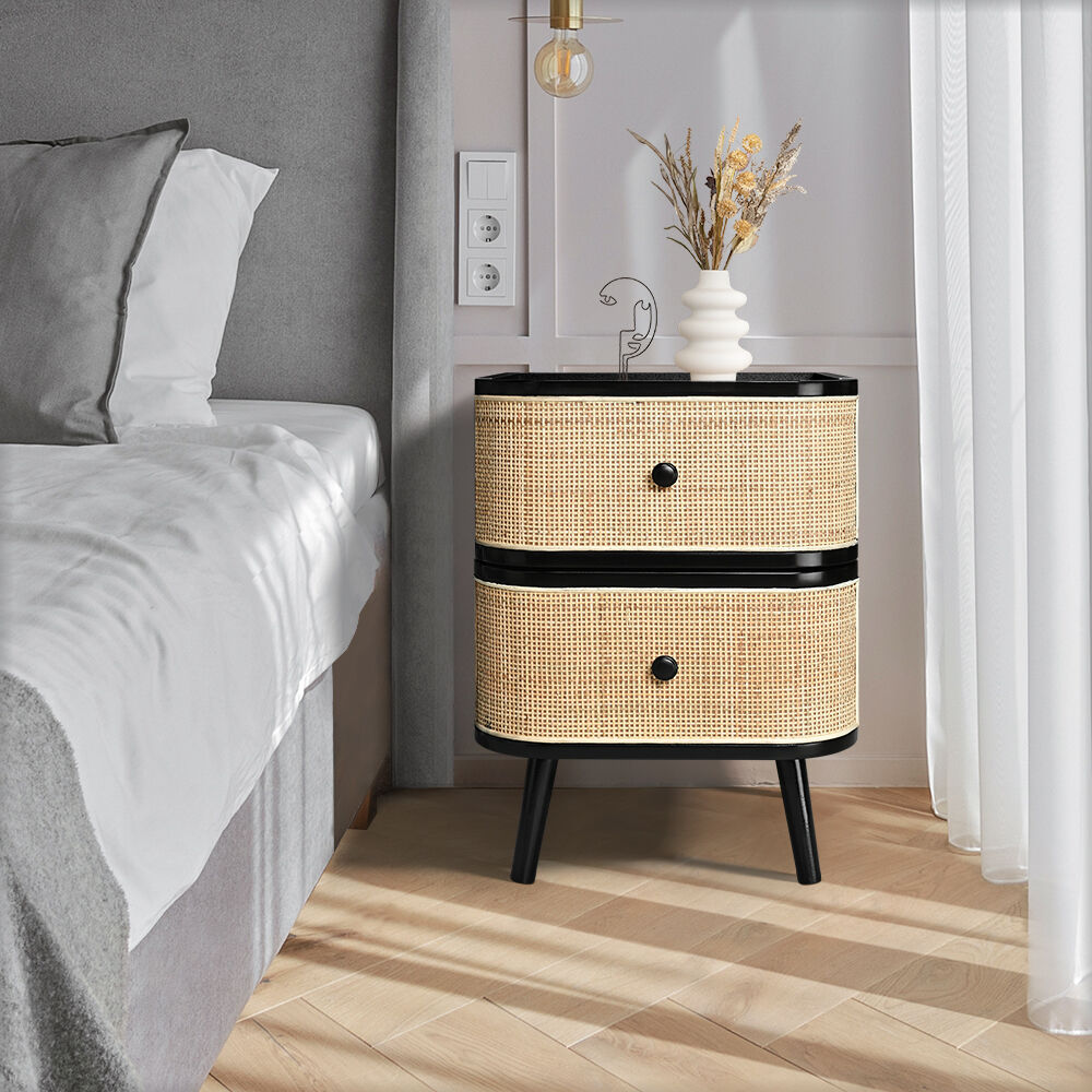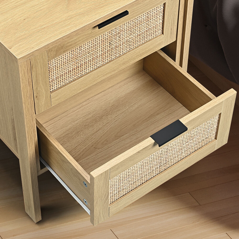 Furb Bedside Table Drawers Rattan Side End Table Nightstand Storage Cabinet