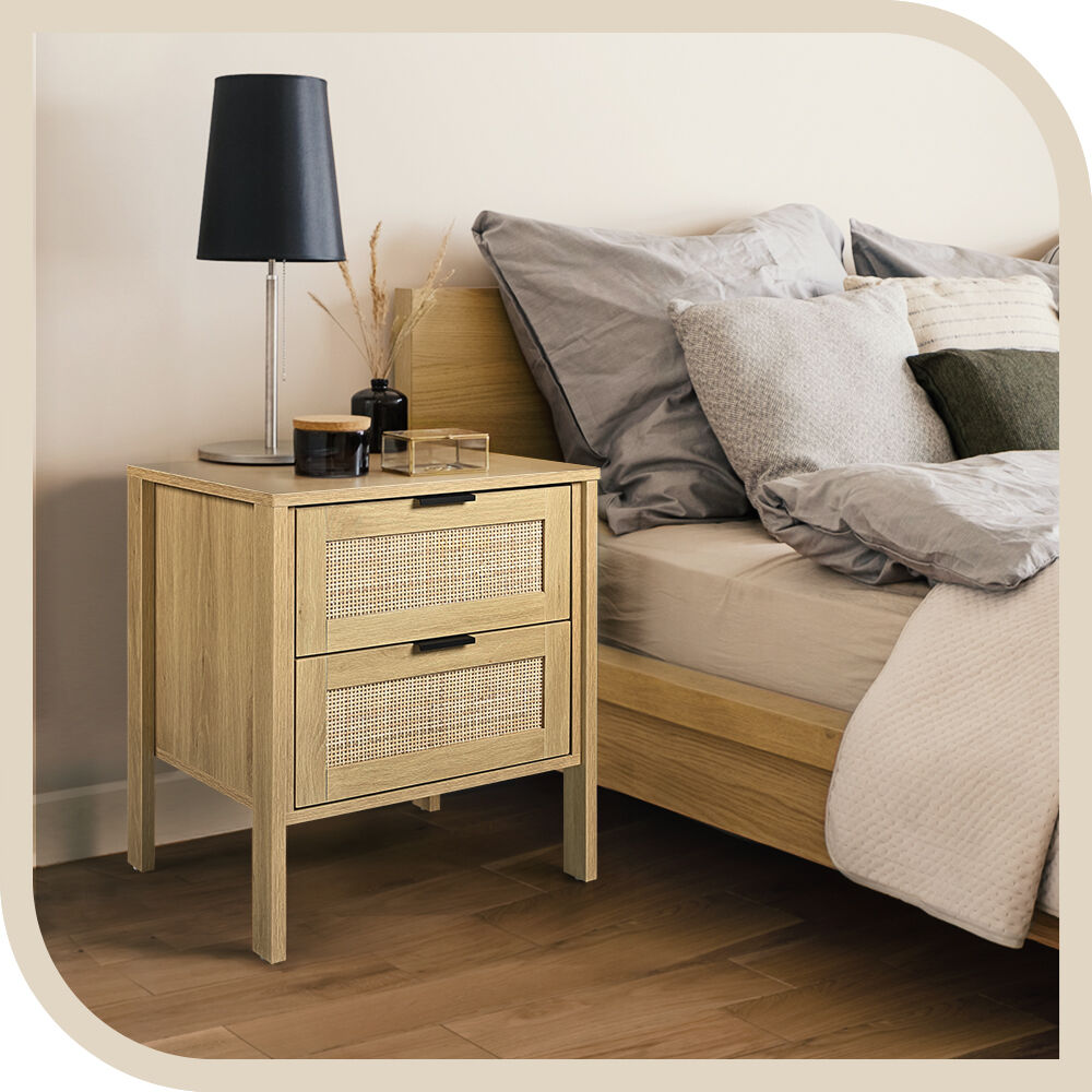This collection of modern bedside tables blends natural finishes, rattan or slatted textures, and functional designs to suit every bedroom or living space. Whether you choose a 1-drawer, 2-drawer, open shelf, or sculptural bamboo design, each piece is crafted for both style and storage. With features like genuine rattan, push-to-open drawers, and EVA-padded legs, these nightstands and side tables offer compact convenience and timeless charm for your homes.