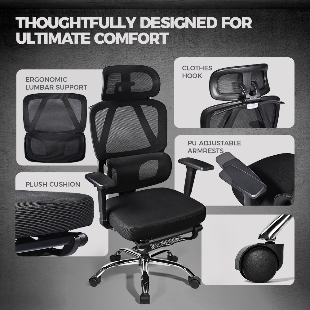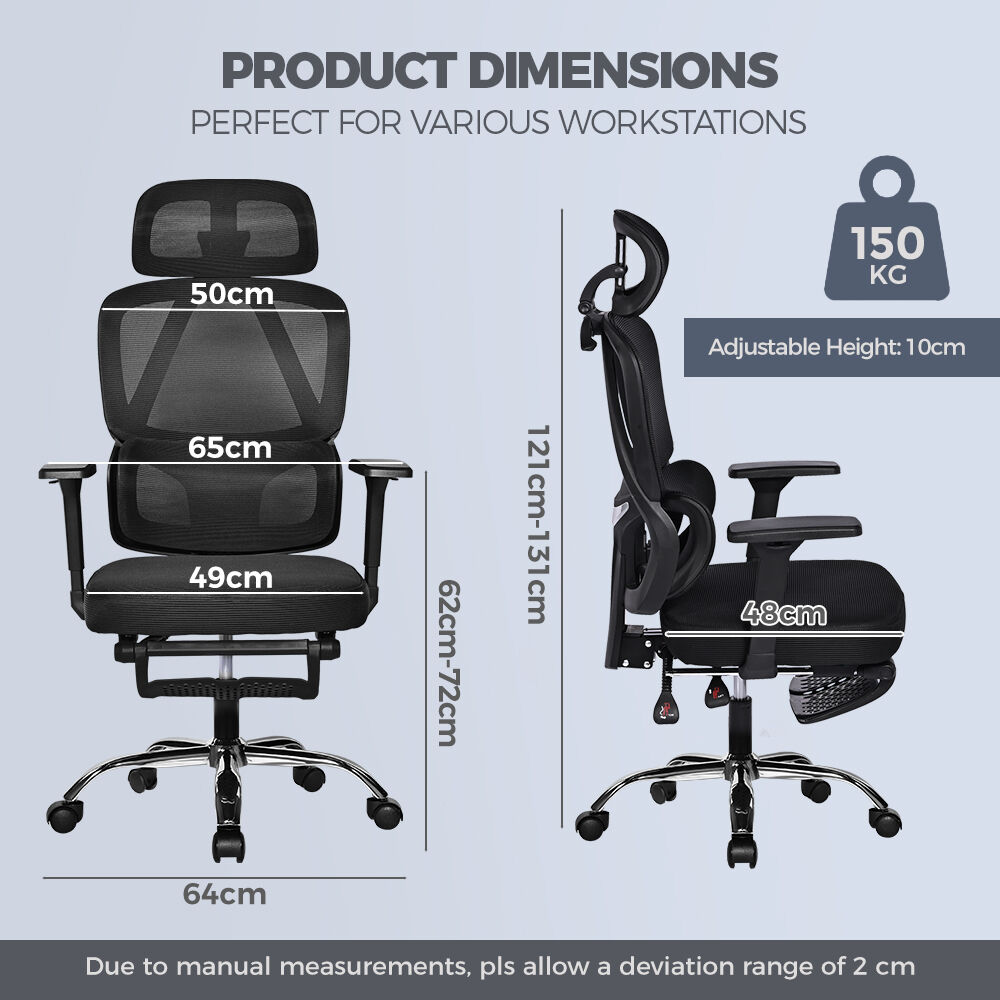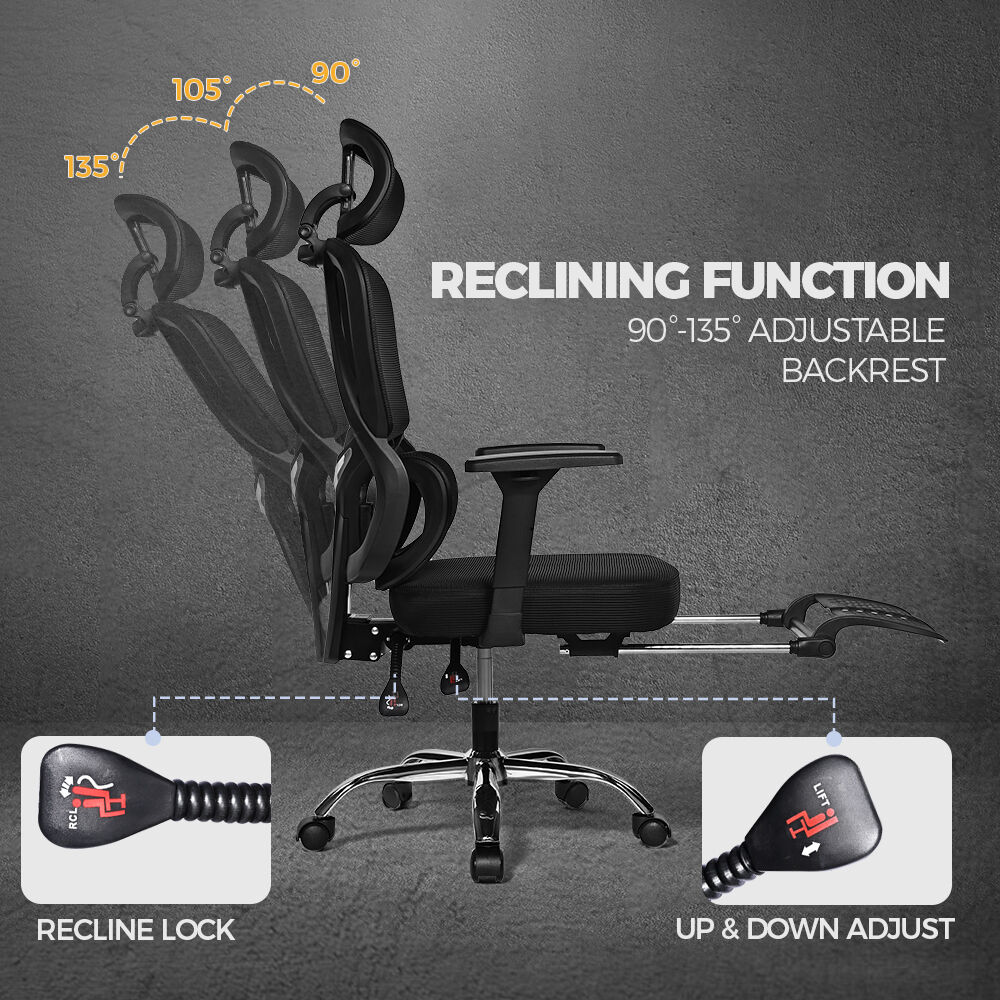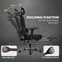 Crafted with mesh material for maximum breathability, this chair keeps you cool and refreshed throughout the day. With its adjustable headrest and 3D multi-function PP armrests, you can customize the chair to fit your unique needs and preferences.The 10cm height adjustment ensures that you can find the perfect seating position, while the tilt tension allows for smooth reclining from 90 to 135 degrees. Retractable footrest is your best companion during your afternoon break.