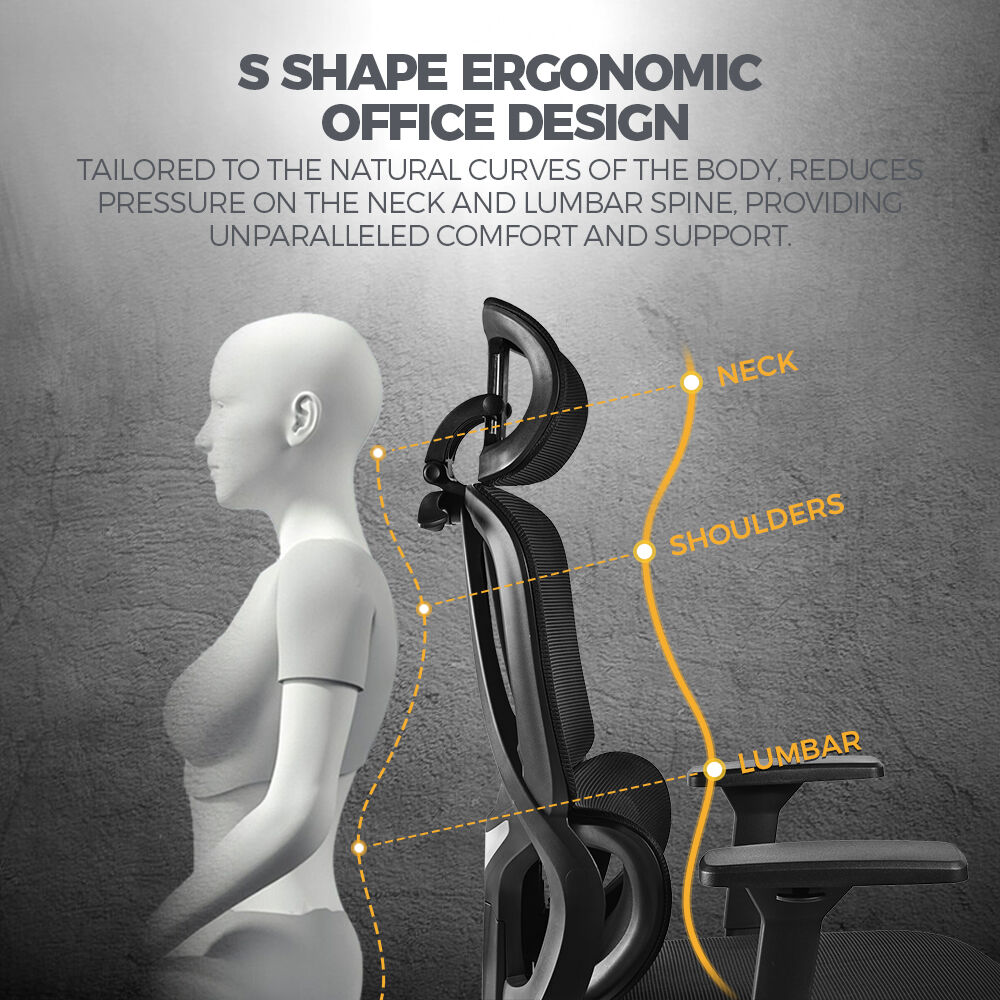 * Ergonomic high-back design. Divisional back and self-adaptive lumbar support
