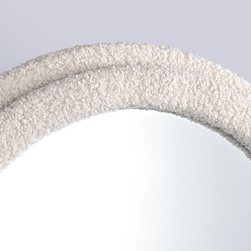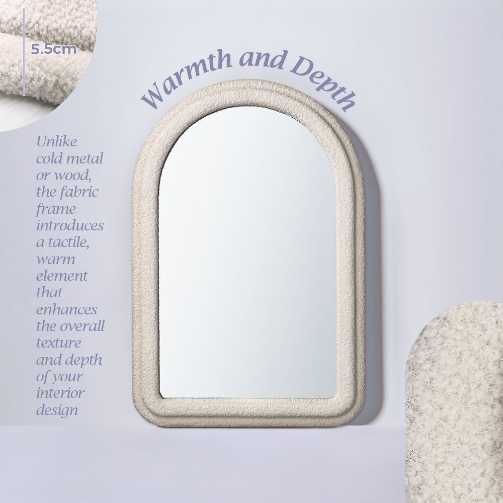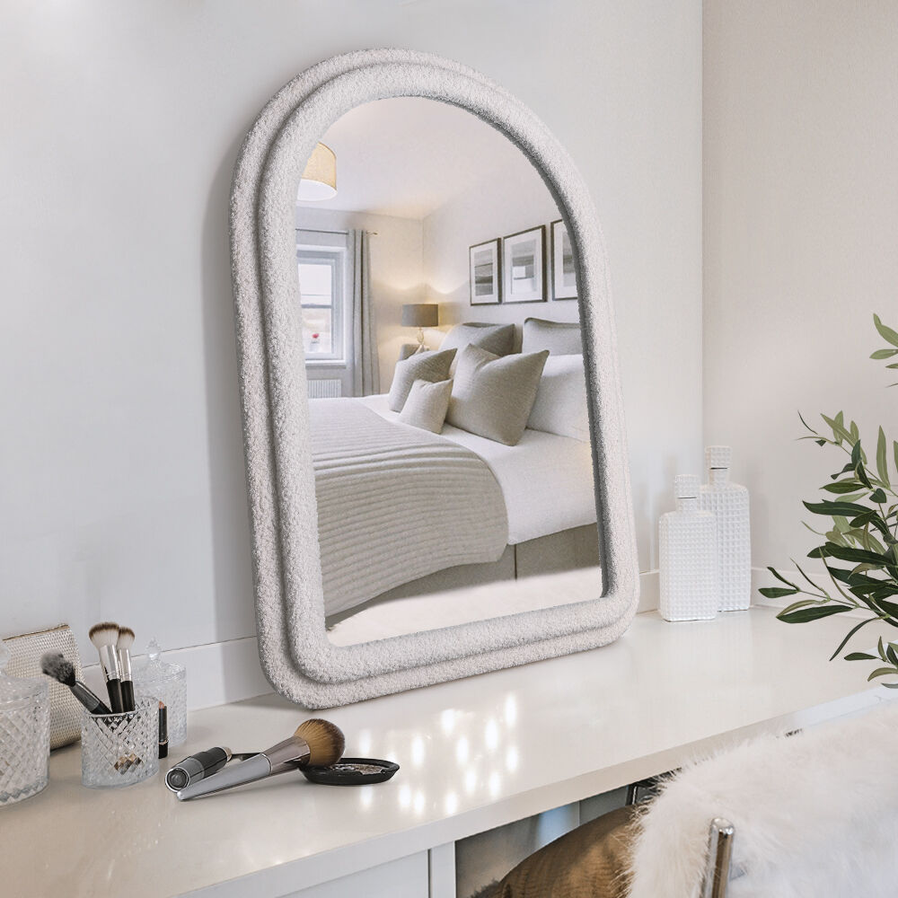 Add a touch of whimsy and elegance to your space with this irregular, fluffy wall mirror. Designed to stand out, its soft, textured edges and unique shape make it an eye-catching centerpiece. Whether hung on the wall or leaning against it, this makeup vanity mirror adds a playful yet sophisticated vibe to any room. Ideal for living rooms, bedrooms, or entryways, its soft, plush frame brings warmth and charm to your home décor.