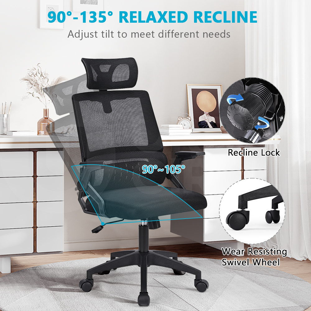 Furb Office Chair Gaming Executive Computer Chair Mesh Fabric Work Seat Black