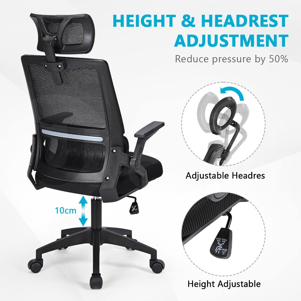 Crafted with mesh material for maximum breathability, this chair keeps you cool and refreshed throughout the day. With its adjustable headrest and PP armrests, you can customize the chair to fit your unique needs and preferences.The 10cm height adjustment ensures that you can find the perfect seating position. The chair is also 360 degrees rotatable, allowing for easy movement and access to different areas of your workspace.