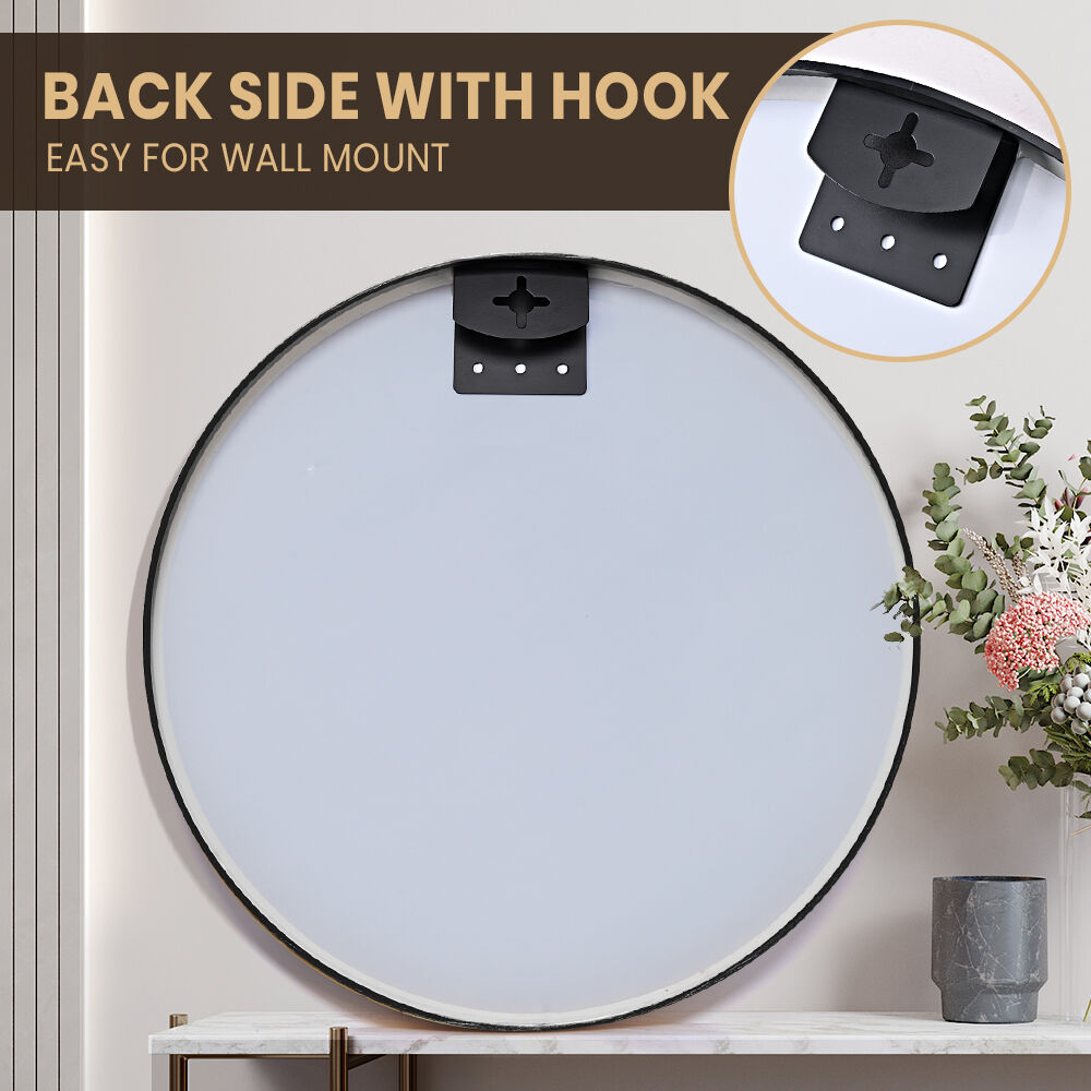 Enhance your space with this stylish metal wall mirror. Designed with a sleek round frame, this mirror blends effortlessly with both modern and classic interiors. Its simple yet elegant look makes it a versatile choice for bathrooms, bedrooms, entryways, or living rooms.