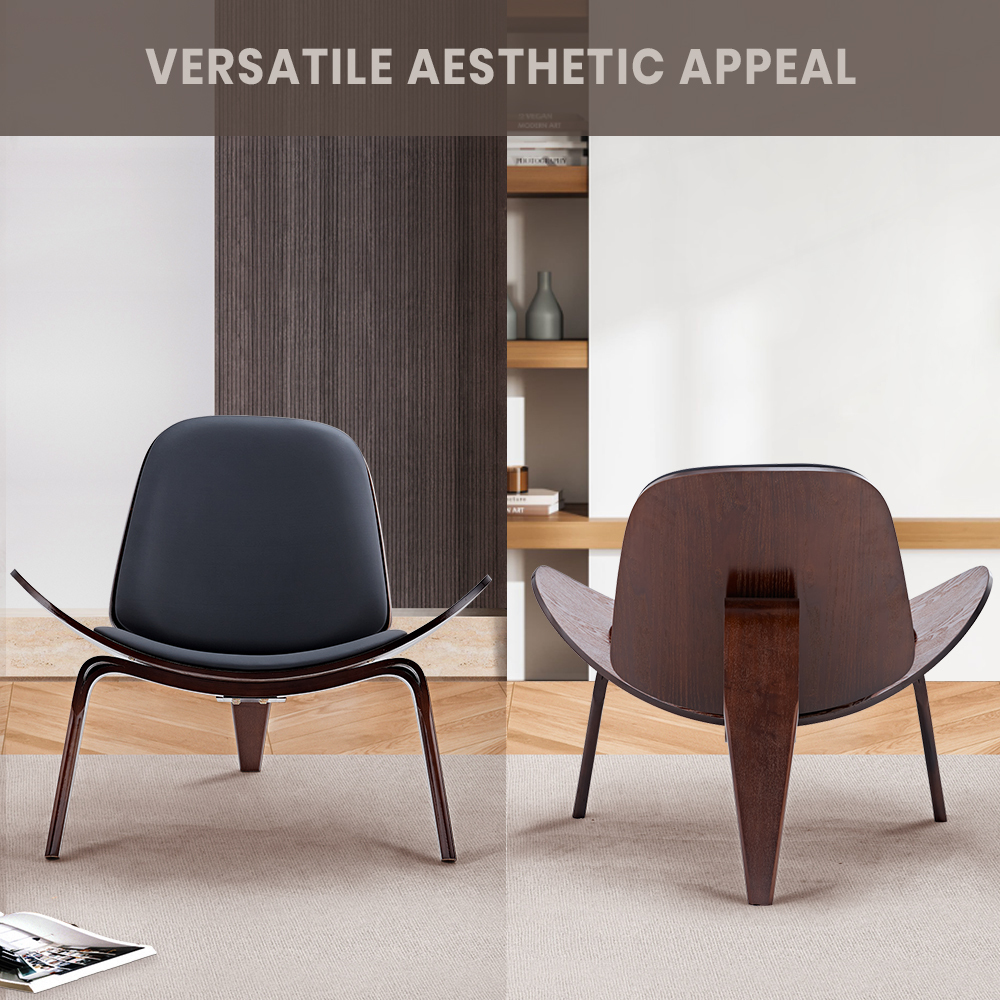 Our shell chair features a gracefully contoured design crafted from high-quality ash plywood, providing a visually striking and comfortable seating experience. The shell design adds a touch of modern elegance to any space.The ash plywood shell, coupled with the PU leather upholstery, results in a versatile aesthetic that seamlessly blends modern and classic elements. This versatility makes the shell chair suitable for various settings, from contemporary offices to stylish dining spaces, offering a timeless and adaptable seating solution.