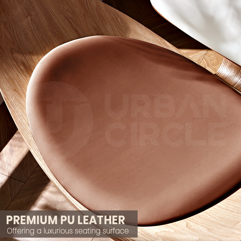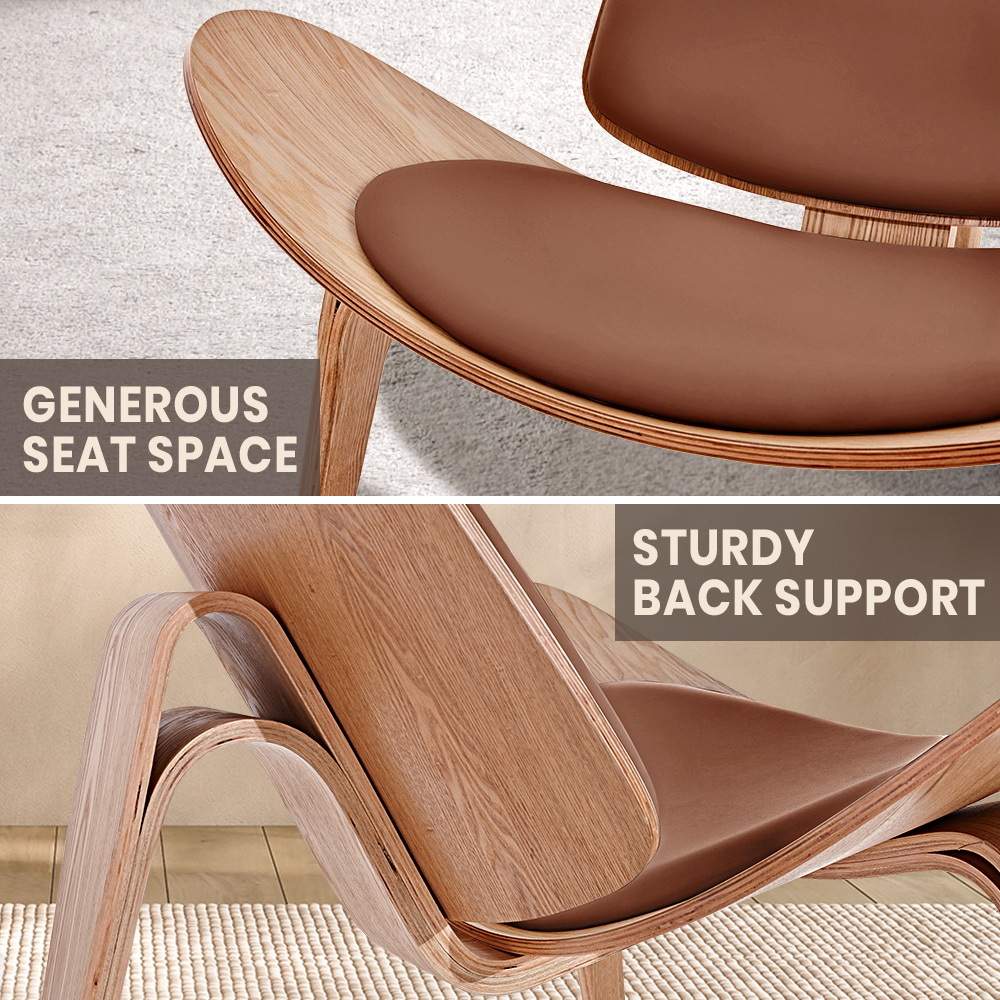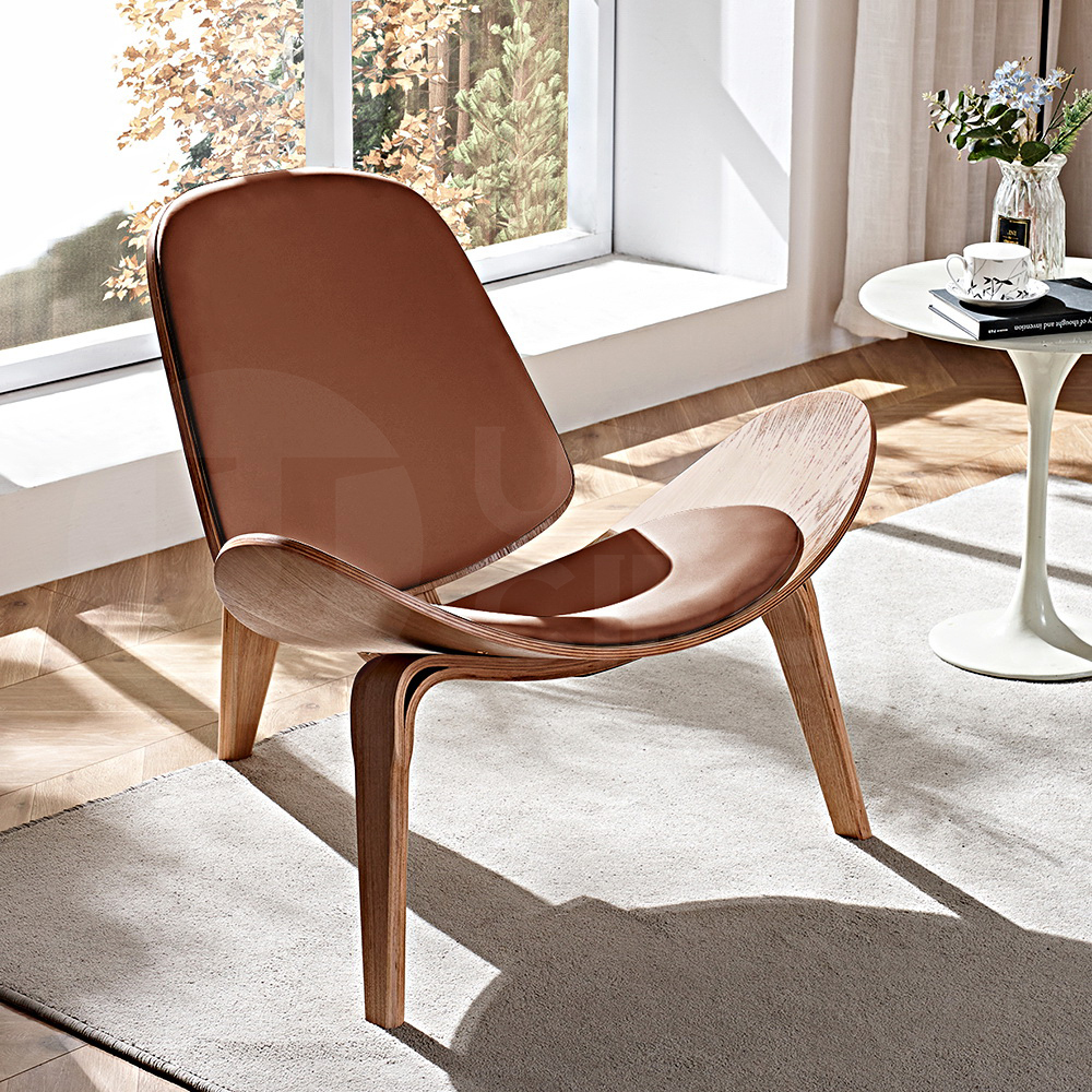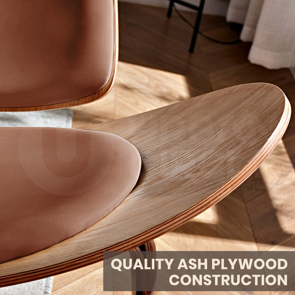 Our shell chair features a gracefully contoured design crafted from high-quality ash plywood, providing a visually striking and comfortable seating experience. The shell design adds a touch of modern elegance to any space.The ash plywood shell, coupled with the PU leather upholstery, results in a versatile aesthetic that seamlessly blends modern and classic elements. This versatility makes the shell chair suitable for various settings, from contemporary offices to stylish dining spaces, offering a timeless and adaptable seating solution.