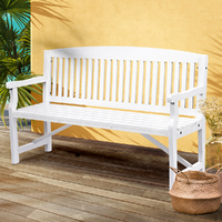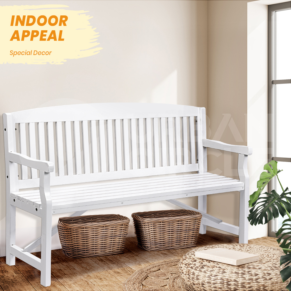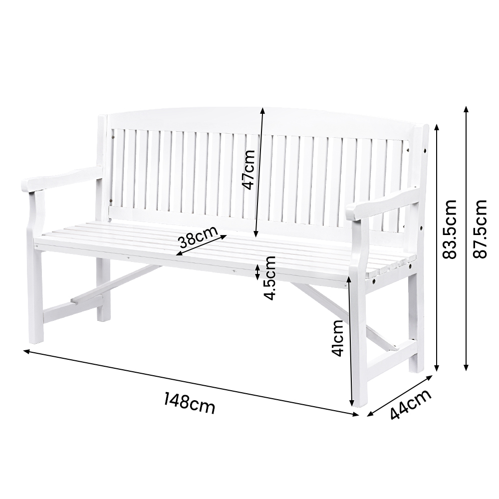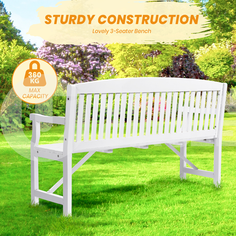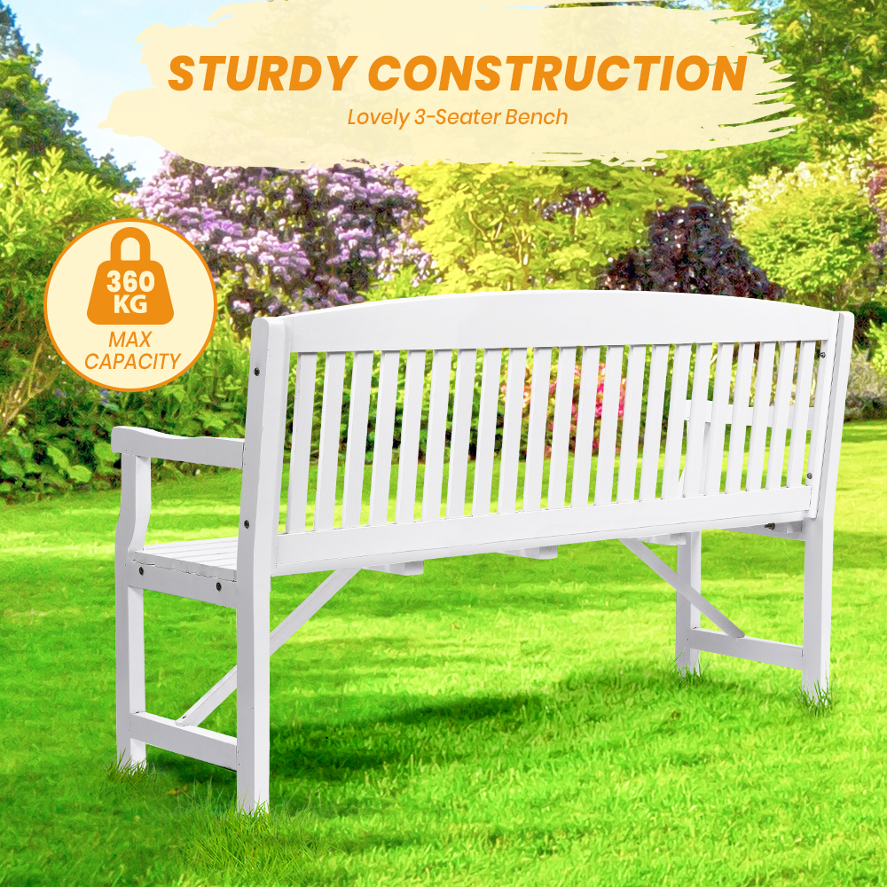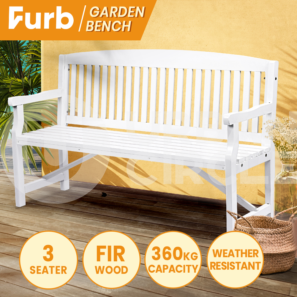 Furb Timber Garden Bench 3 Seat Wooden Outdoor Chair Patio Park Furniture White