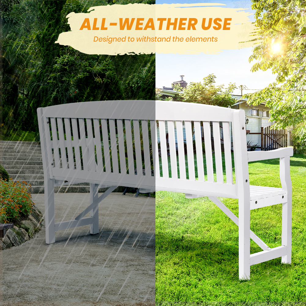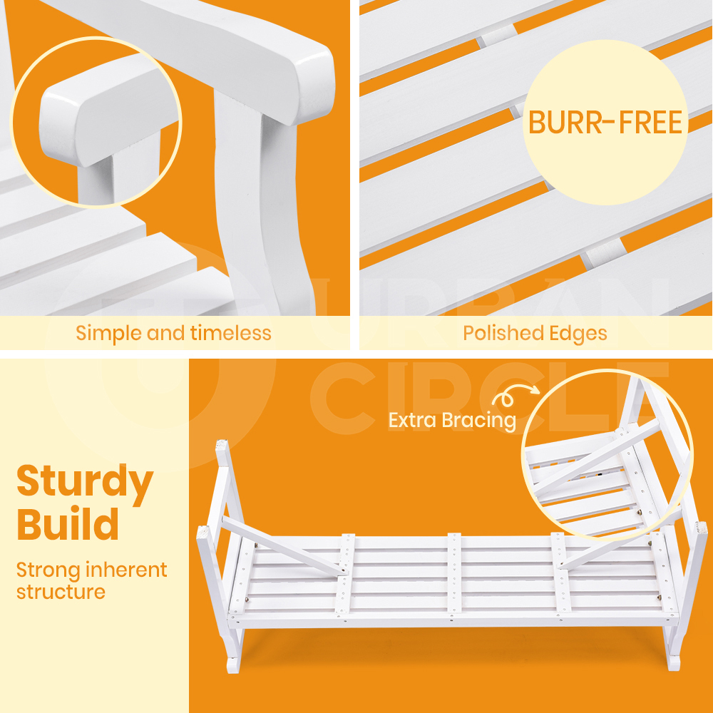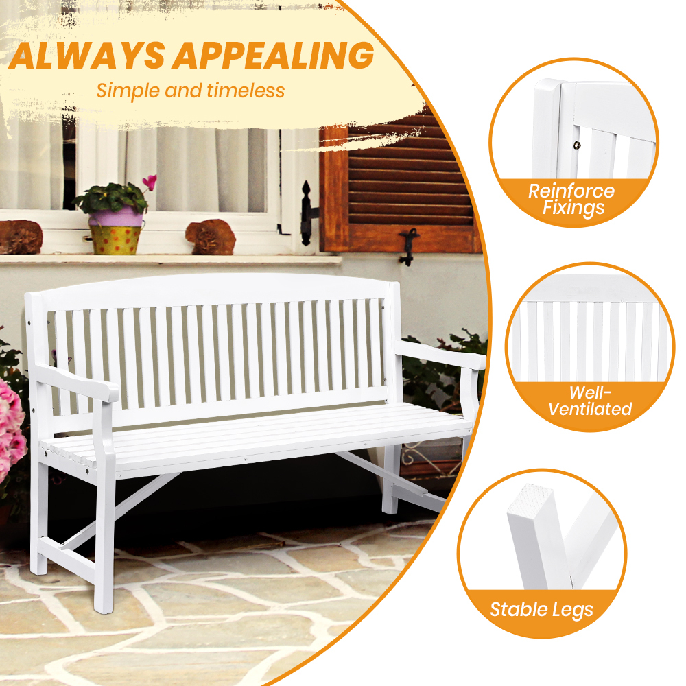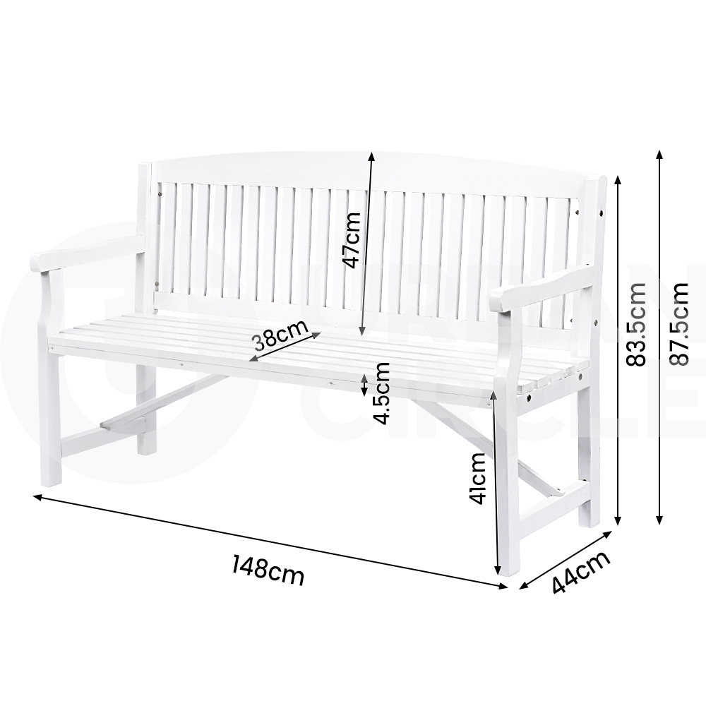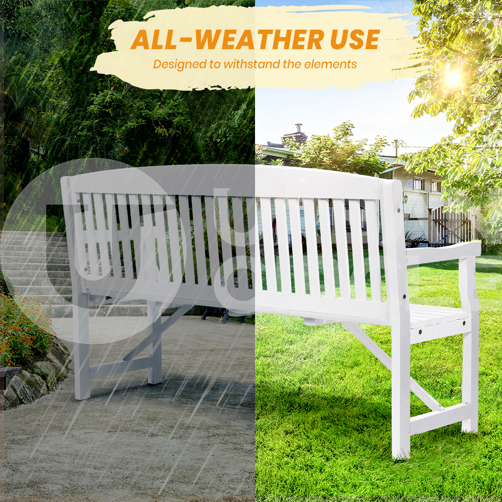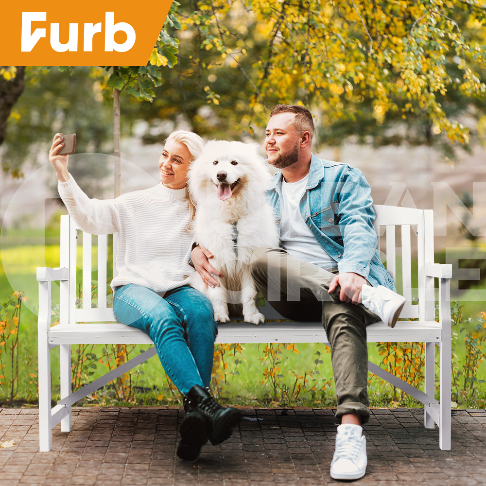 Furb Timber Garden Bench 3 Seat Wooden Outdoor Chair Patio Park Furniture White