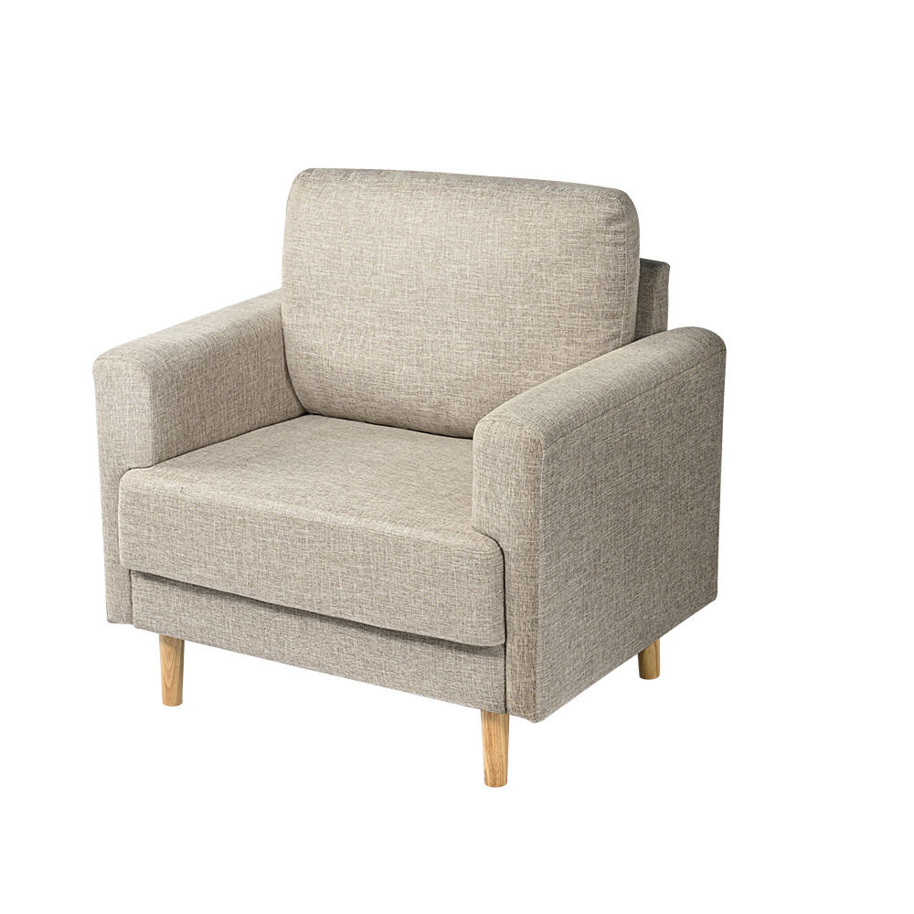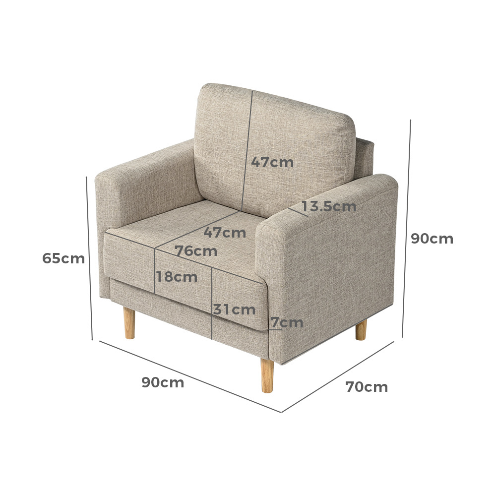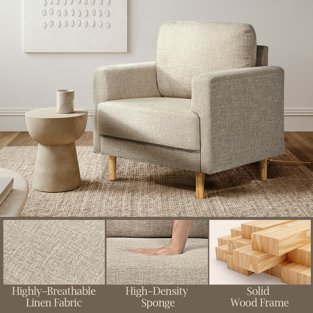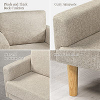 This sofa is crafted with highly breathable linen fabric, ensuring comfort and a cool seating experience. The cushions are filled with high-density sponge, providing exceptional support and maintaining their shape over time. Built with a solid wood frame, this sofa offers sturdy and durable construction, making it a reliable addition to any living space.