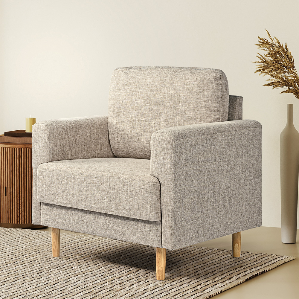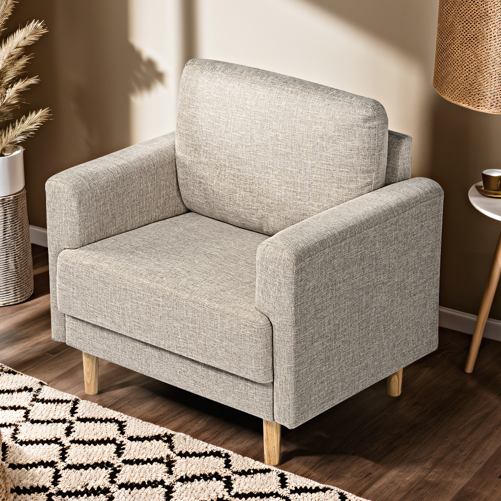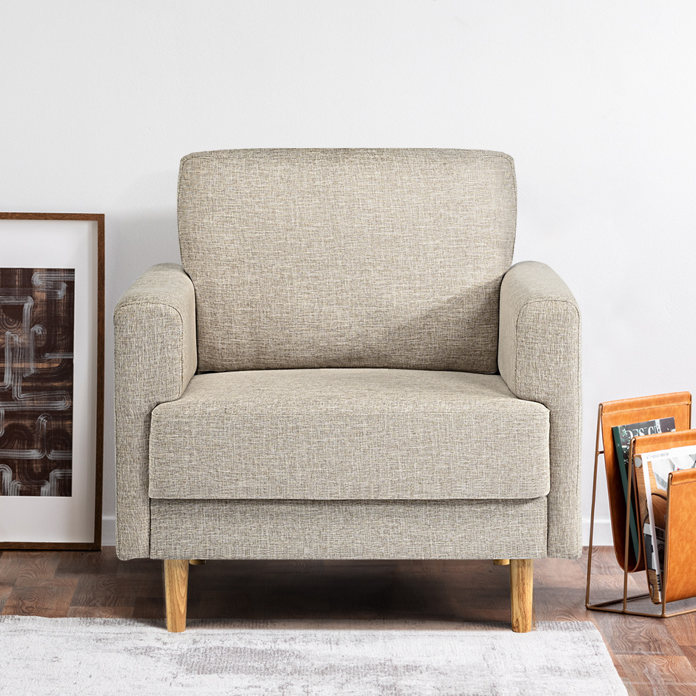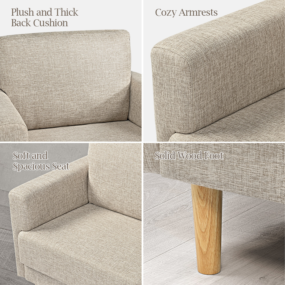 This sofa is crafted with highly breathable linen fabric, ensuring comfort and a cool seating experience. The cushions are filled with high-density sponge, providing exceptional support and maintaining their shape over time. Built with a solid wood frame, this sofa offers sturdy and durable construction, making it a reliable addition to any living space.