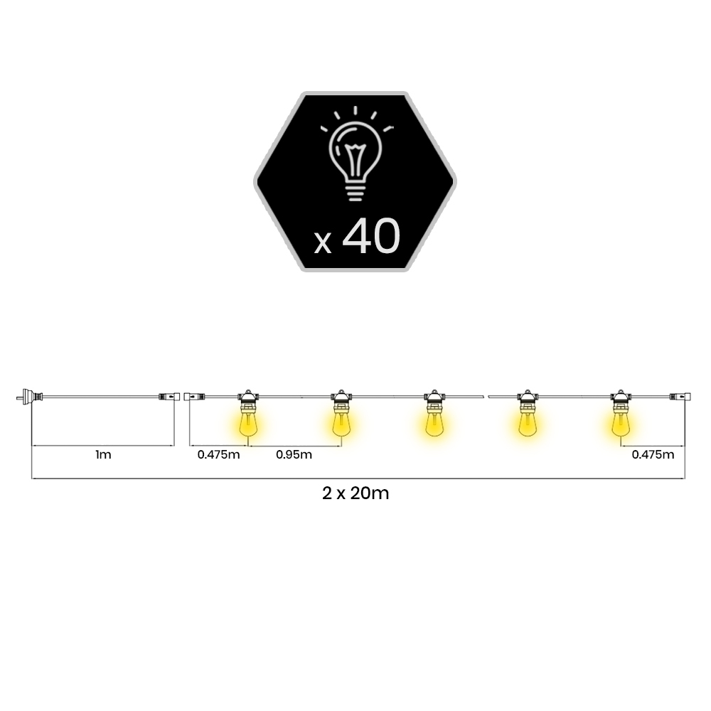 - 2x 20m Festoon String Lights Set