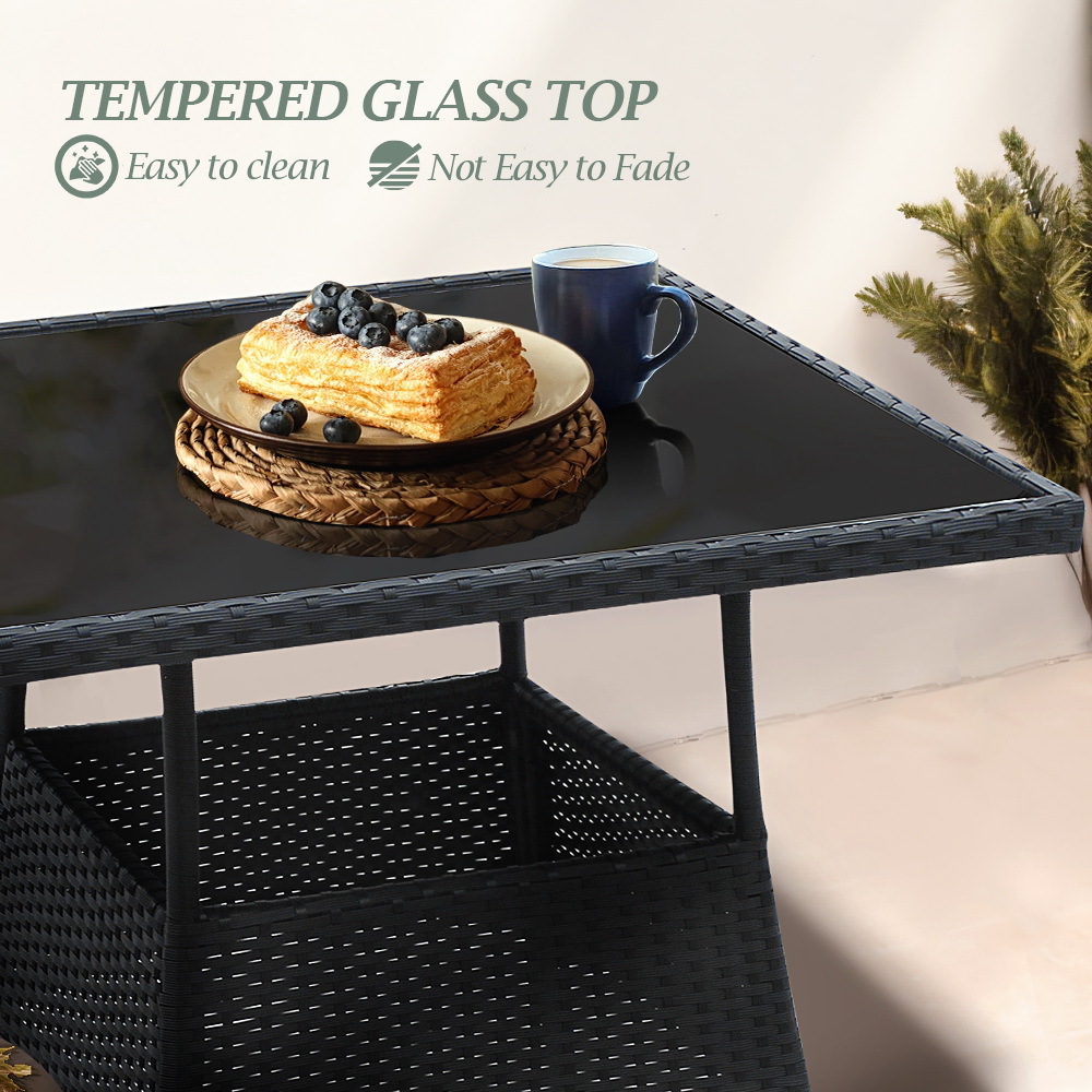 - Tempered glass tabletop makes items easy to fetch and easy to clean