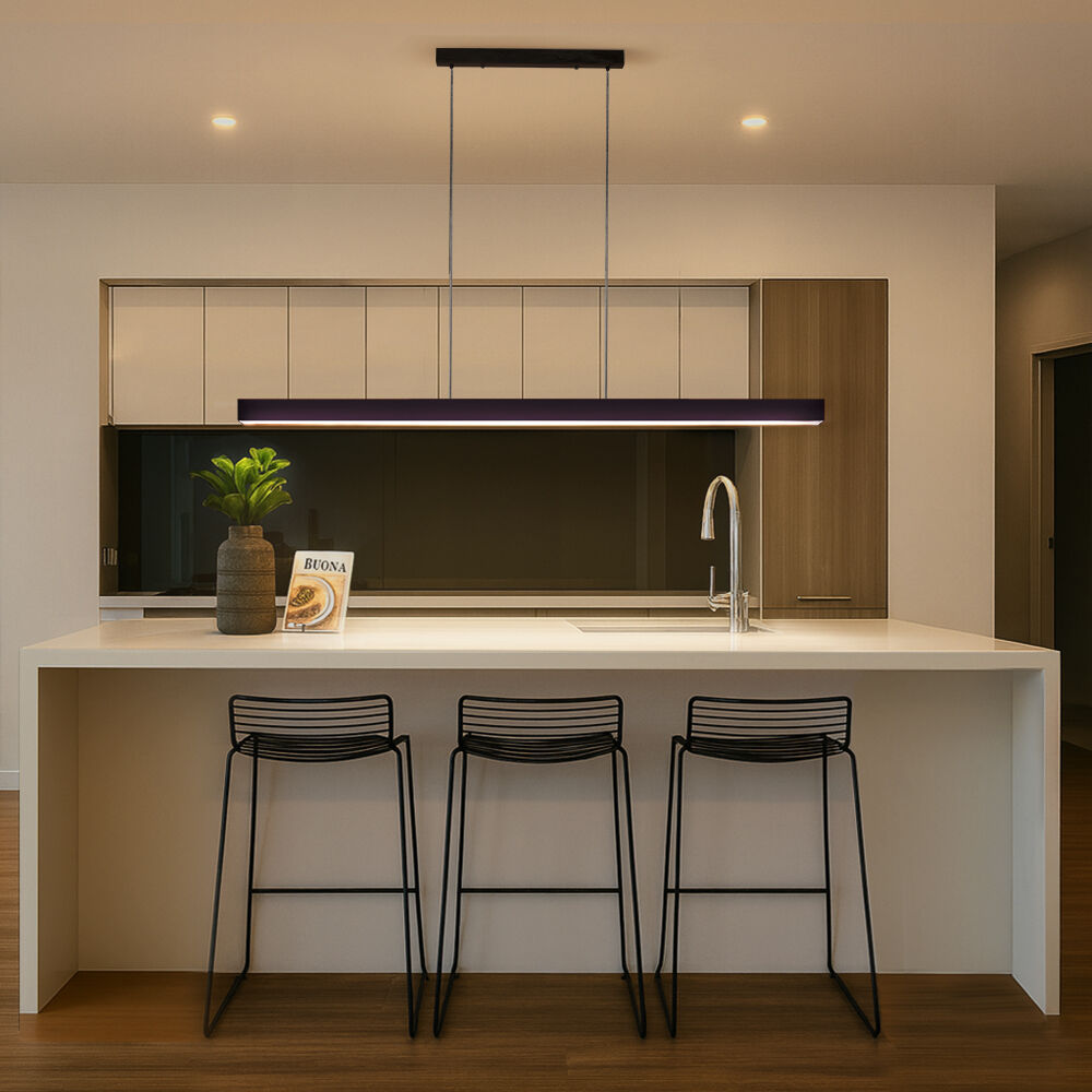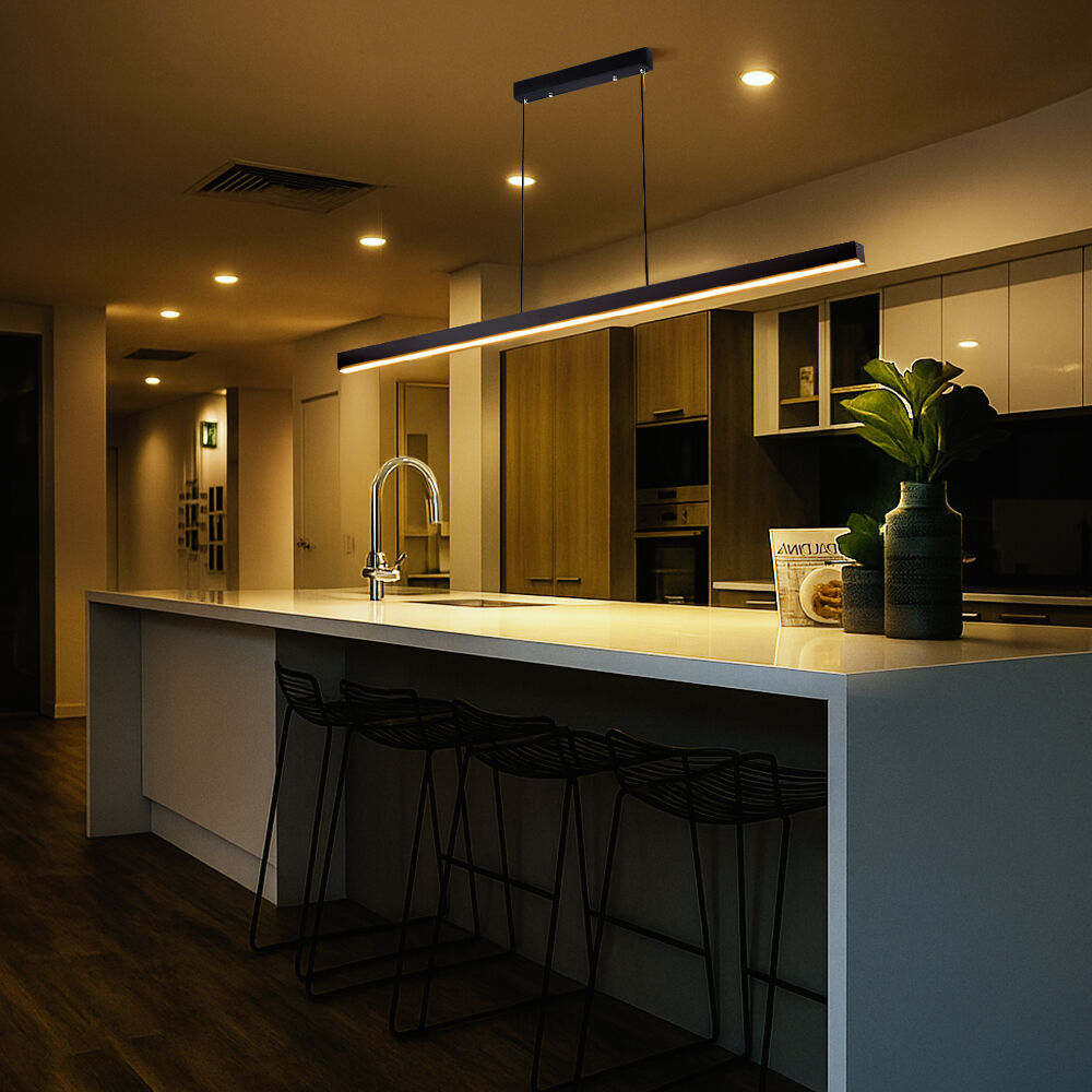 Elevate your space with our Aluminum Linear Pendant Light, a harmonious blend of modern minimalism and functional design. Crafted from premium aluminum in a sleek black finish, its linear silhouette brings a contemporary edge to any environment. Ideal for dining areas, kitchen islands, or office spaces, this pendant light emits bright, energy-efficient illumination while seamlessly complementing modern, industrial, or minimalist interiors. Complete with easy-to-use hanging hardware, it allows for quick installation, transforming your space into a well-lit, stylish haven with a distinct modern aesthetic.