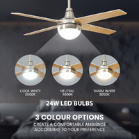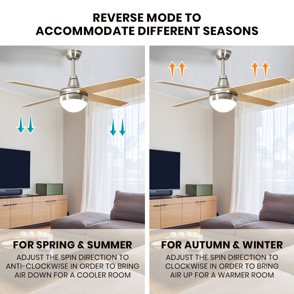Keep your rooms cool during summer and balmy during winter. Equipped with a powerful 35W DC motor, the Krear Ceiling Fan comes with a reverse cycle mode that allows blades to keep the air down for cooling during warm seasons and up for warming during winter. Enjoy a cozy ambience with energy-efficient LED lighting of the ceiling fan with three colour choices to suit your mood.