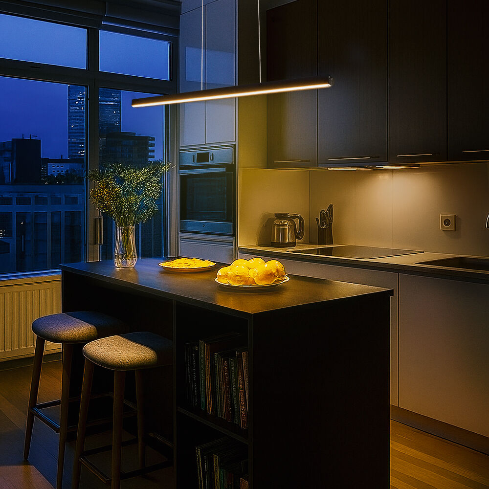 Elevate your space with our Aluminum Linear Pendant Light, a harmonious blend of modern minimalism and functional design. Crafted from premium aluminum in a sleek black finish, its linear silhouette brings a contemporary edge to any environment. Ideal for dining areas, kitchen islands, or office spaces, this pendant light emits bright, energy-efficient illumination while seamlessly complementing modern, industrial, or minimalist interiors. Complete with easy-to-use hanging hardware, it allows for quick installation, transforming your space into a well-lit, stylish haven with a distinct modern aesthetic.