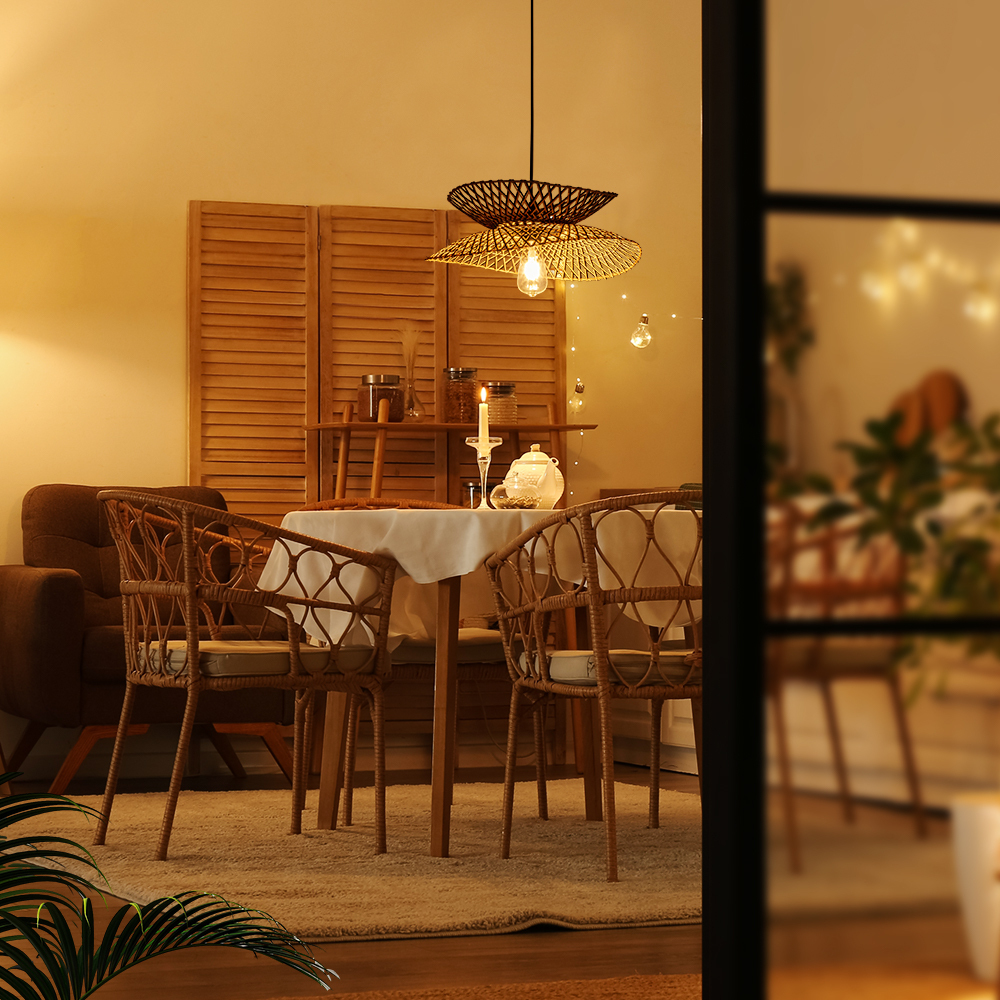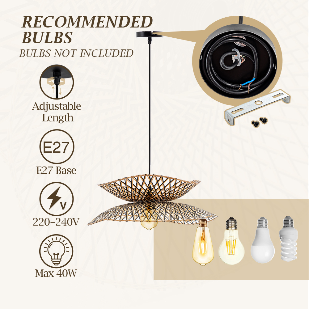 Enhance your space with this pendant lamp featuring a natural bamboo handwoven lampshade. Its adjustable height offers versatile placement, while the rustic, irregular beauty of the design adds a unique, organic touch to any room.
