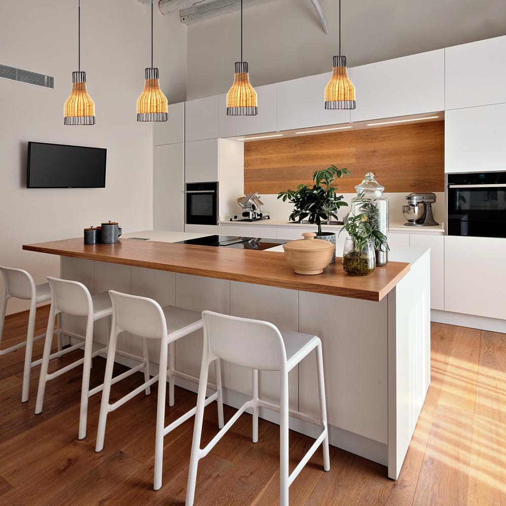 Enhance your space with this pendant lamp featuring a natural bamboo handwoven lampshade. Its adjustable height offers versatile placement, while the rustic, irregular beauty of the design adds a unique, organic touch to any room.