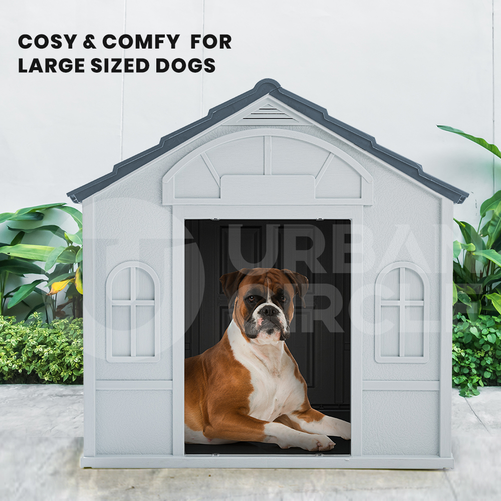 The Outdoor Dog Kennel provides a loving home to your pup with its spacious interior that is cozy and comfy for your dog. Made with durable high-density PP plastic, this kennel works excellent indoor or outdoor under Australian weather. Its UV-resistant corrugated roofing provides shade from the midday sun and drains rainwater quickly when the rainy season kicks in.