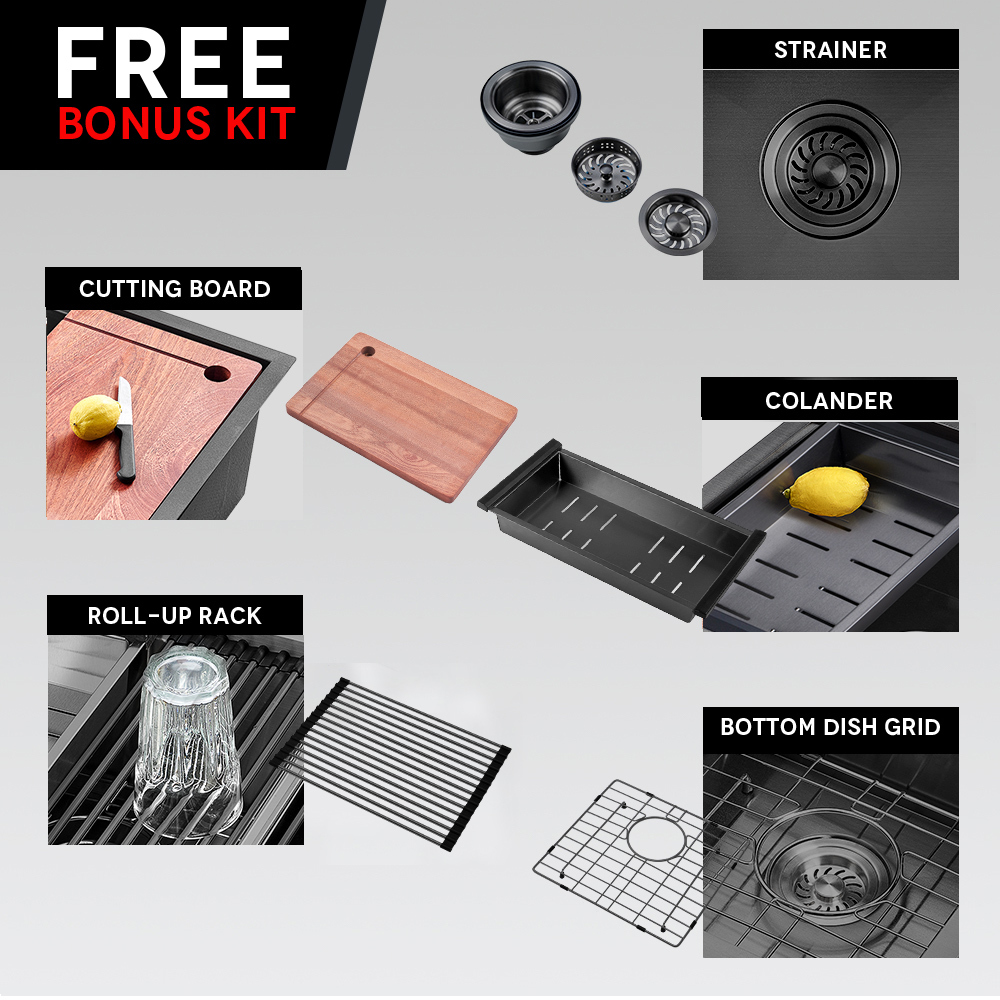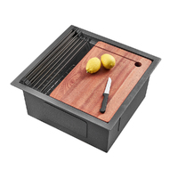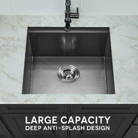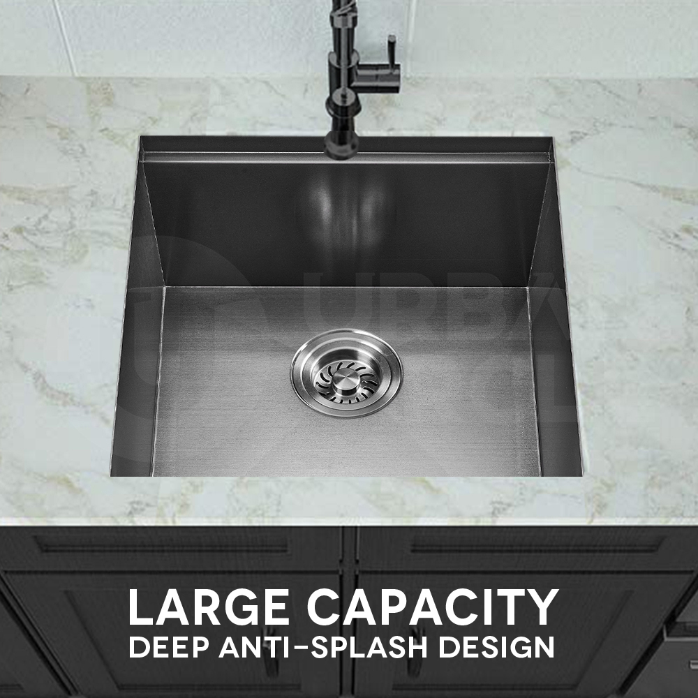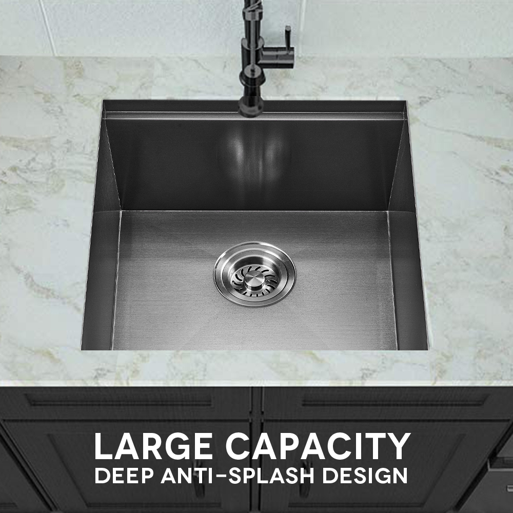 Simplus 45x45CM Kitchen Sink Set Stainless Steel Laundry Single Bowl Basin Black