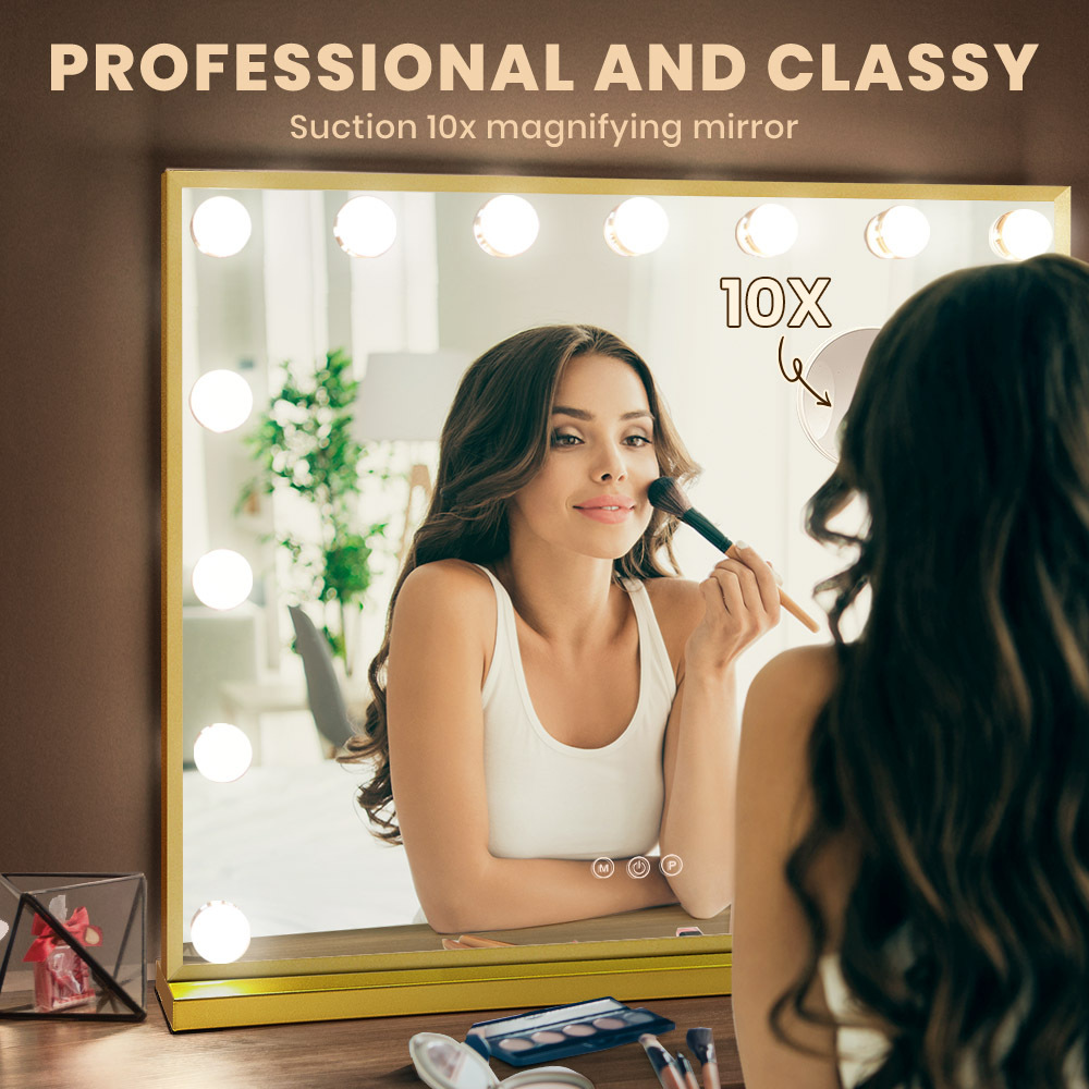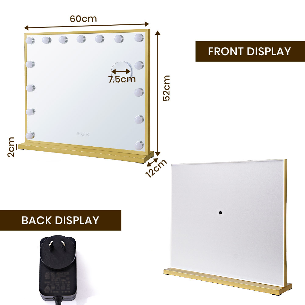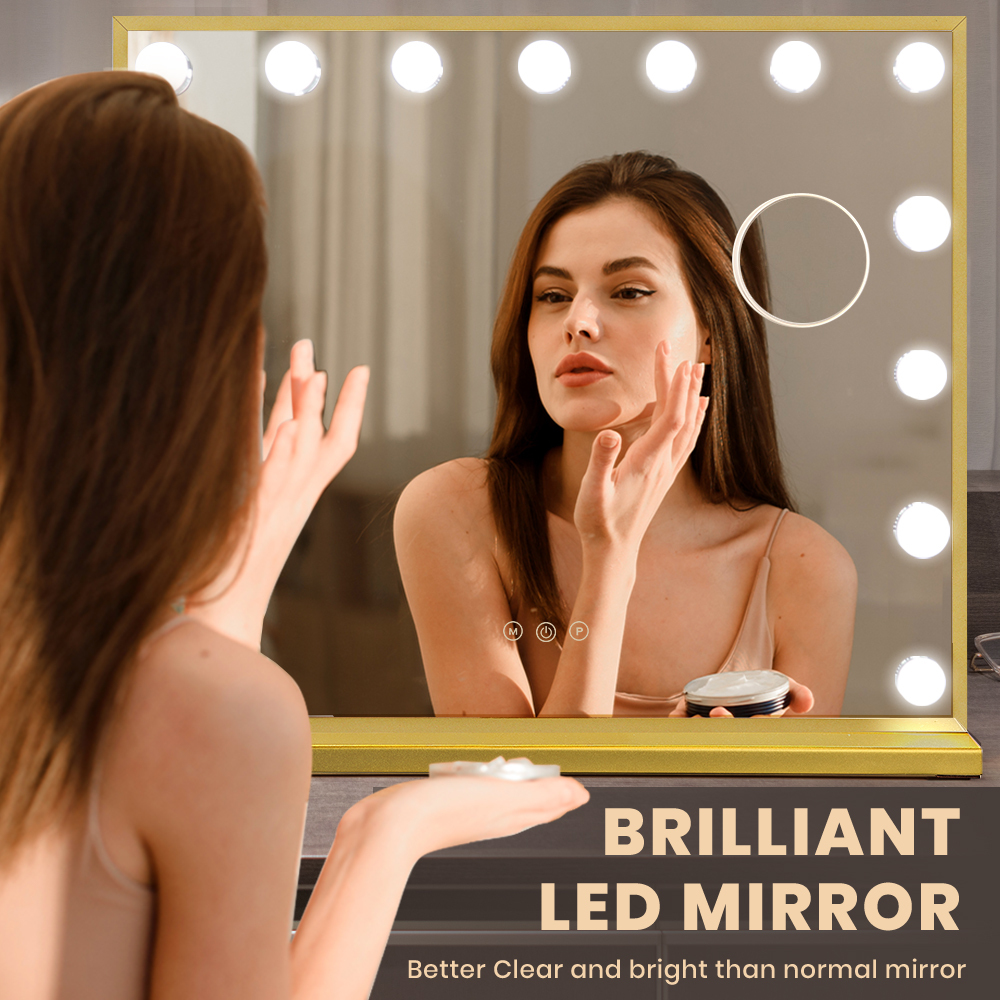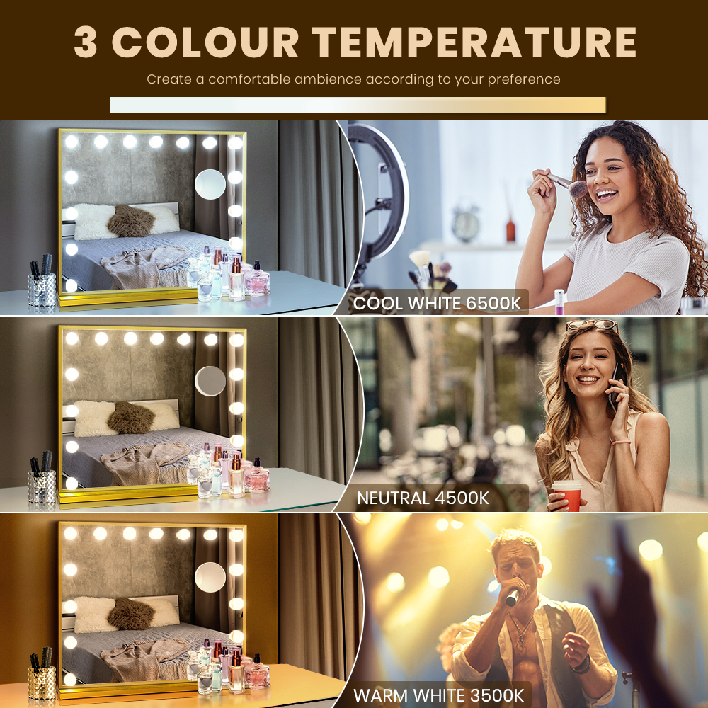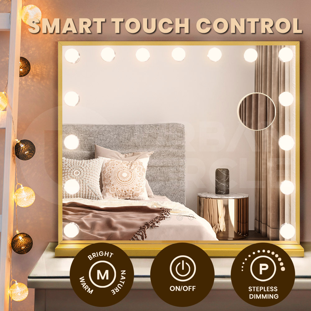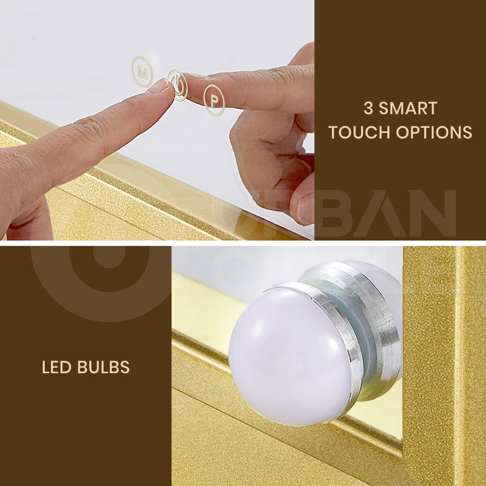 Mirrors are an integral part of our everyday lives, serving both functional and decorative purposes. The Simplus LED Makeup Mirror brings a modern touch and soft, illuminating light to any space. Its energy-efficient LED bulbs surround the mirror, providing bright, even lighting for your daily beauty routine or personal styling sessions. With a sleek aluminium frame, the mirror is both lightweight and durable, adding a chic, glamorous feel to any room. The smooth MDF back panel ensures stability and long-lasting quality. The LED bulbs have an impressive lifespan of up to 50,000 hours. Featuring smart controls, you can easily switch the light on/off and adjust the brightness and light temperature to suit your needs: choose from white, neutral, or warm light. This versatile mirror can either stand freely or be wall-mounted, making it perfect for bedrooms, closets, lounges, and offices.