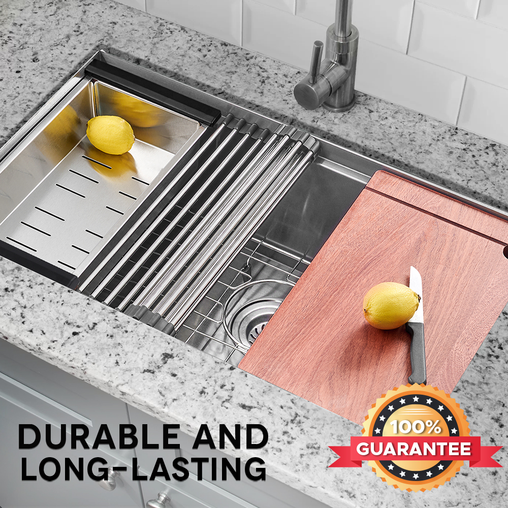 - Deep anti-splash design and large capacity for stacking dishes and pots