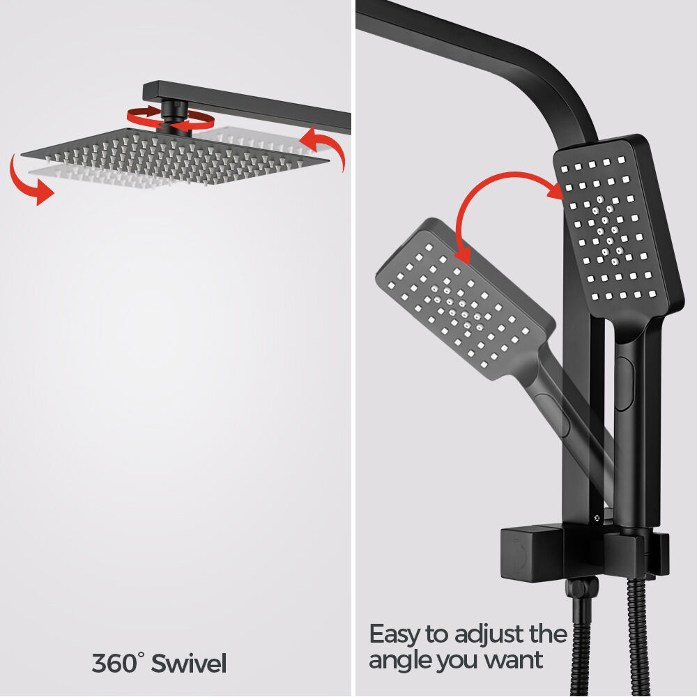 Simplus 8" Rain Shower Head Set Square Mixer Tap 2 in 1 Dual Handheld Shower