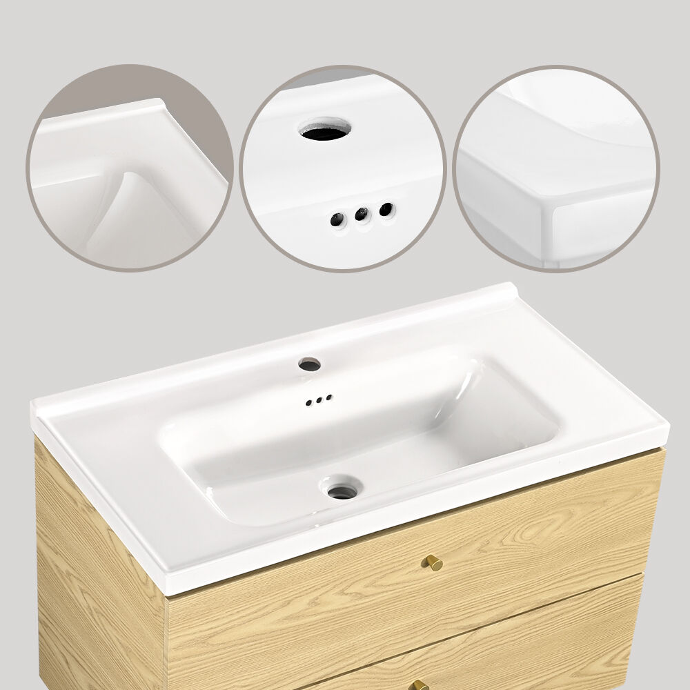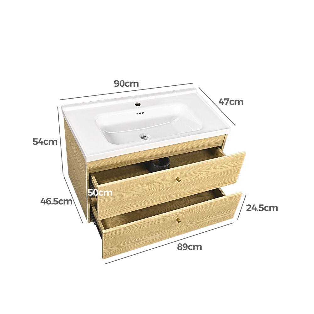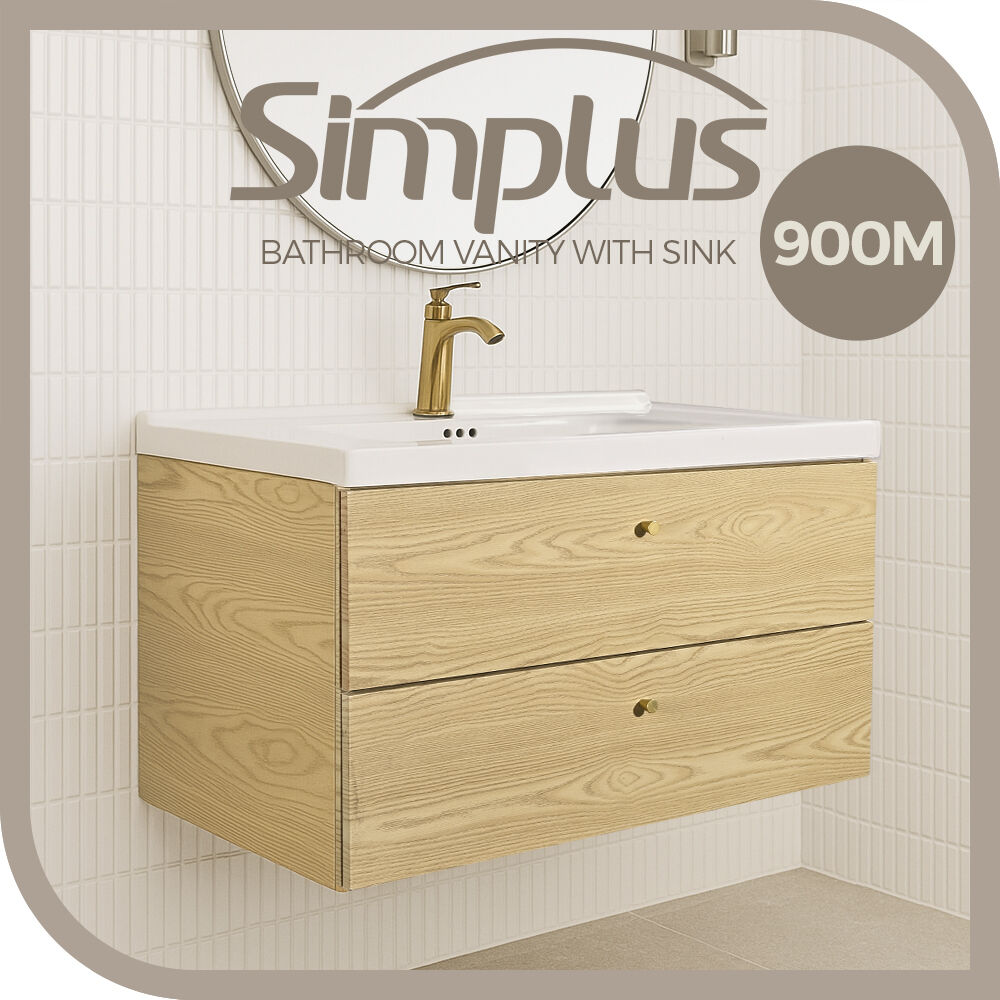 Simplus Bathroom Vanity Unit Cabinet Storage Wall Hung Sink Ceramic Basin 900MM