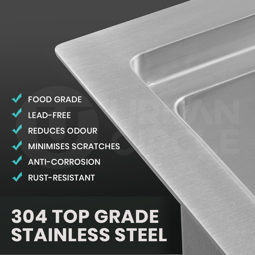 The Nano anti-bacterial technology takes hygiene to the next level, providing a kitchen environment that's not just stunning but also safe. The angled X-flume design and deep anti-splash features showcase meticulous engineering, while the delicate R10 corners add a touch of sophistication.