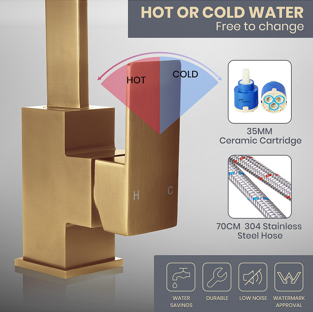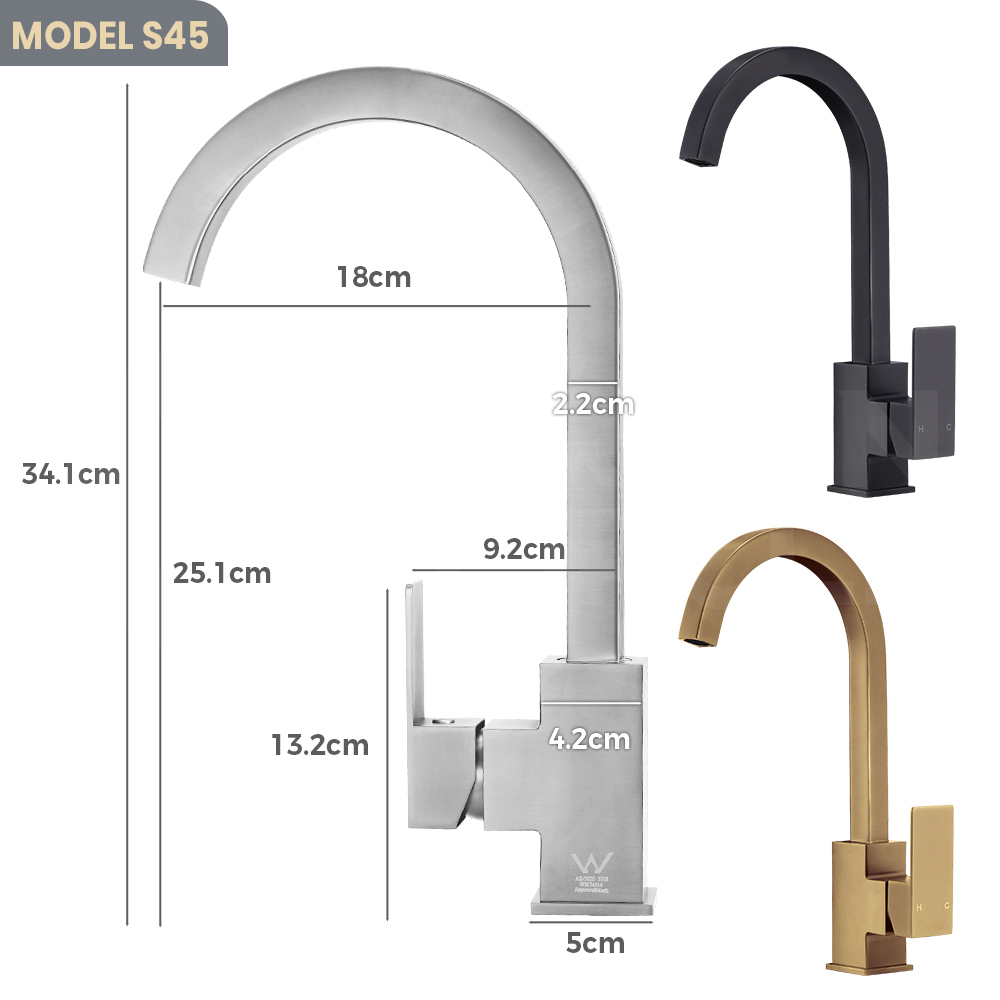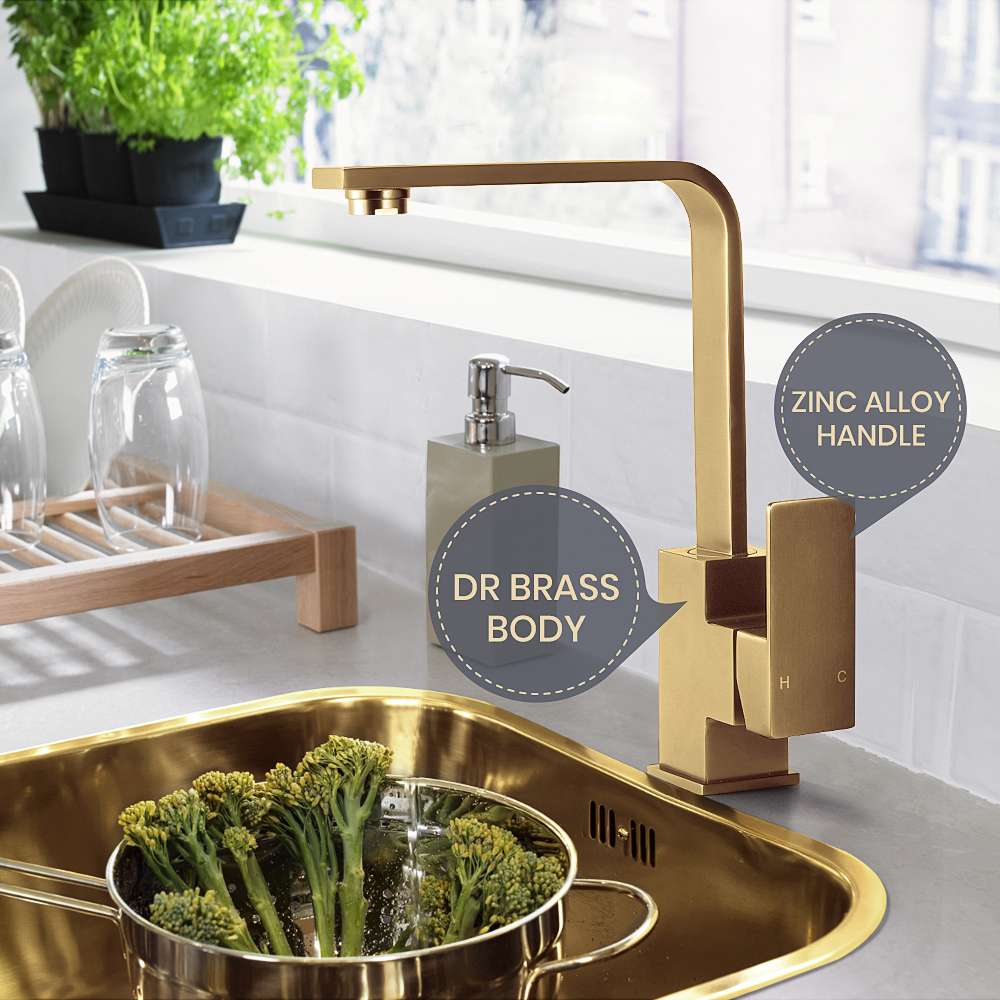Simplus Brass Swivel Kitchen Mixer Tap WELS Registration Number is 1379 Gold