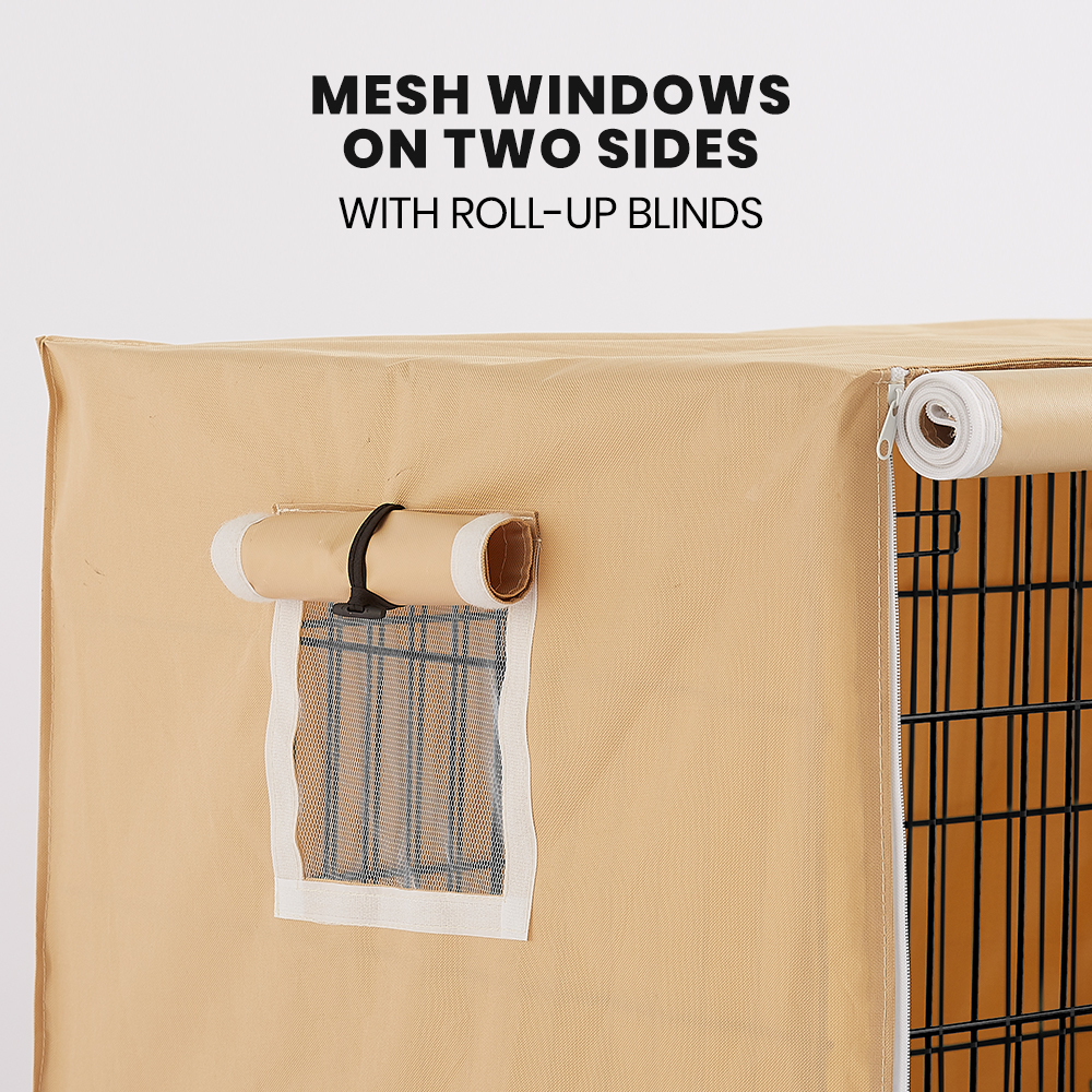 Your furry friend can enjoy a little peek while having a rest with the Taily Cage Cover's mesh windows and roll-up blinds. Plus, its overall design also offers convenience and flexibility with adjustable straps and zippers.