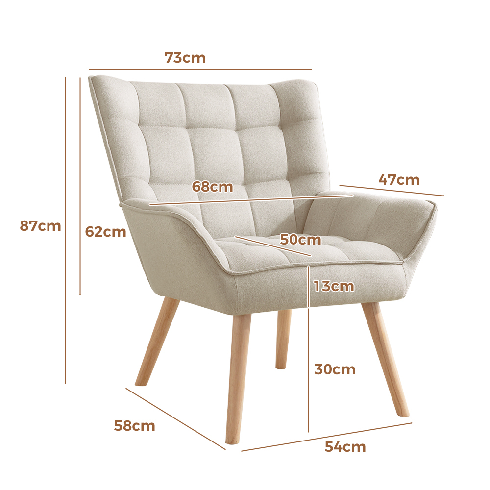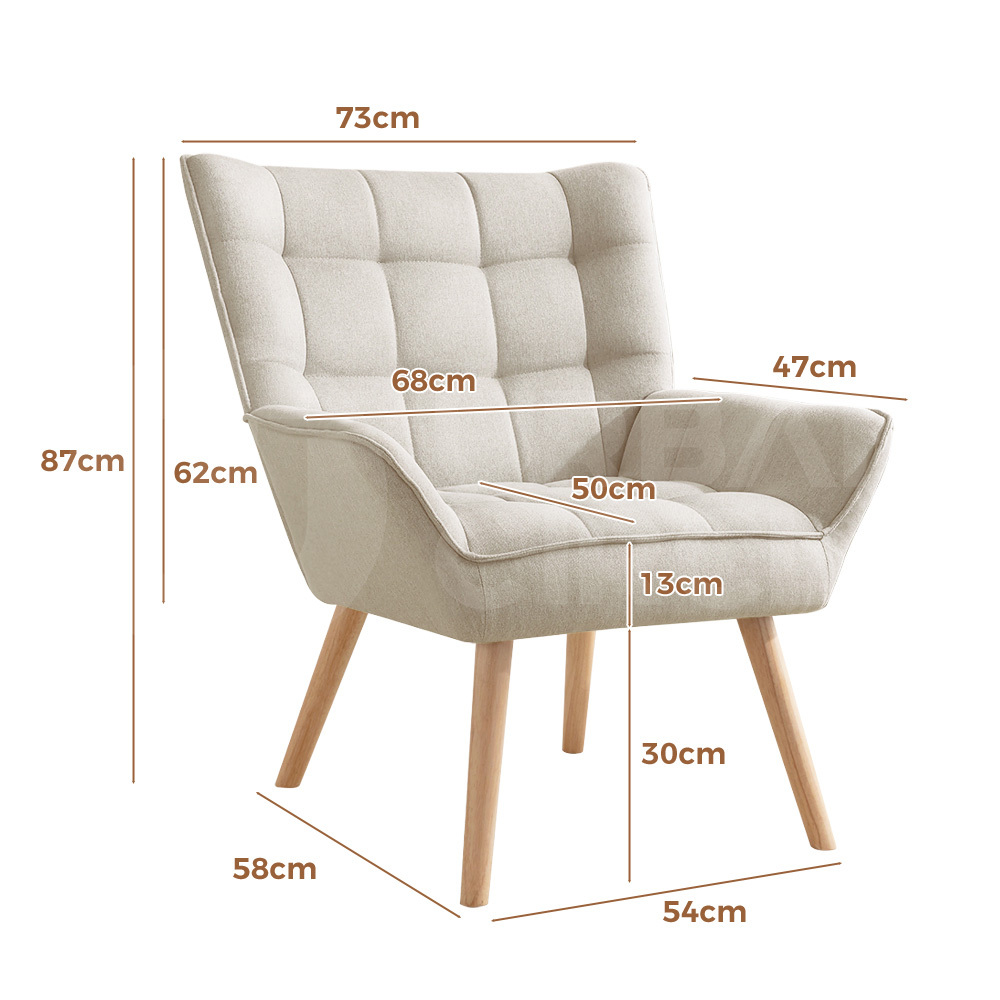 Our armchair is a haven for your arms. The thick pad armrests envelop you in a cocoon of softness, inviting you to experience the joy of sinking into a world of unparalleled comfort. Whether you're enjoying a quiet evening or engaging in lively conversations, every touch is a reminder of luxury.Take a seat and feel the difference. The thick pad seat offers a cloud-like experience, cradling you in a plush embrace. It's not just about sitting; it's about creating a moment of serenity, where the cares of the day melt away as you immerse yourself in the sheer comfort of our arm chair.Lean back and let our armchair provide the support your back deserves. The comfort back support is more than just a feature; it's a promise of relaxation. Whether you're unwinding after a long day or finding solace in a good book, our armchair ensures your sitting experience is nothing short of blissful.