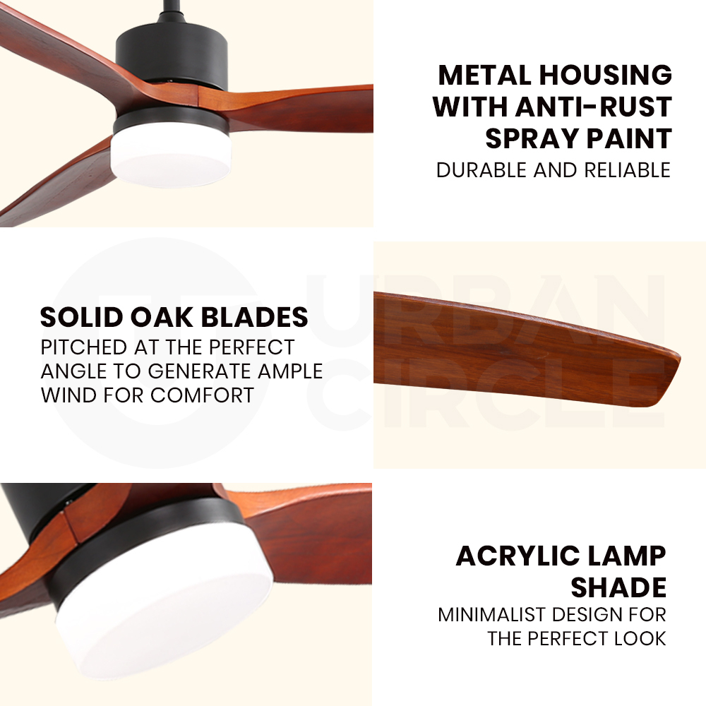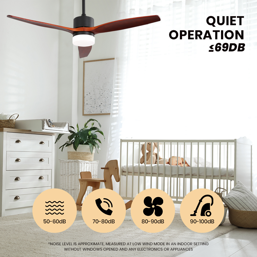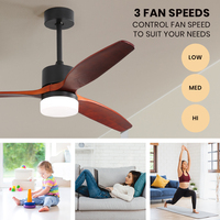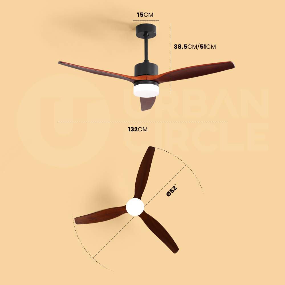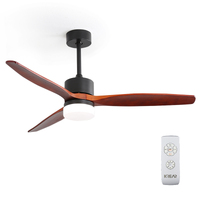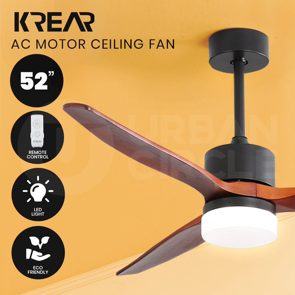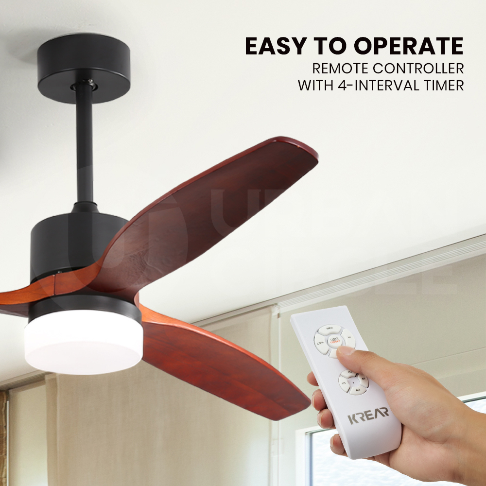 Krear 52" Ceiling Fan With LED Light And Remote 3 Wooden Blades Motor Fans Black