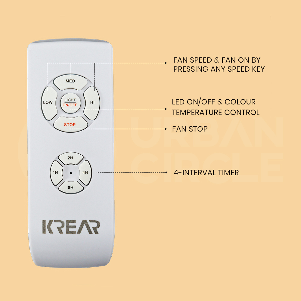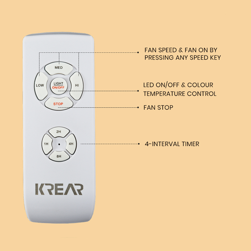 Enjoy a cozy ambience as some Krear AC Motor Ceiling Fan models include energy-efficient LED lighting with three colour choices to suit your mood.