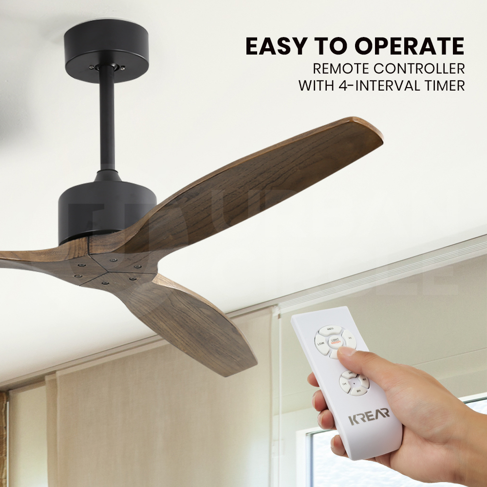 Get the air circulation you need with the Krear AC Motor Ceiling Fan. This remote controlled wooden fan complements most homes and offices with its sleek metal body and minimalist design.