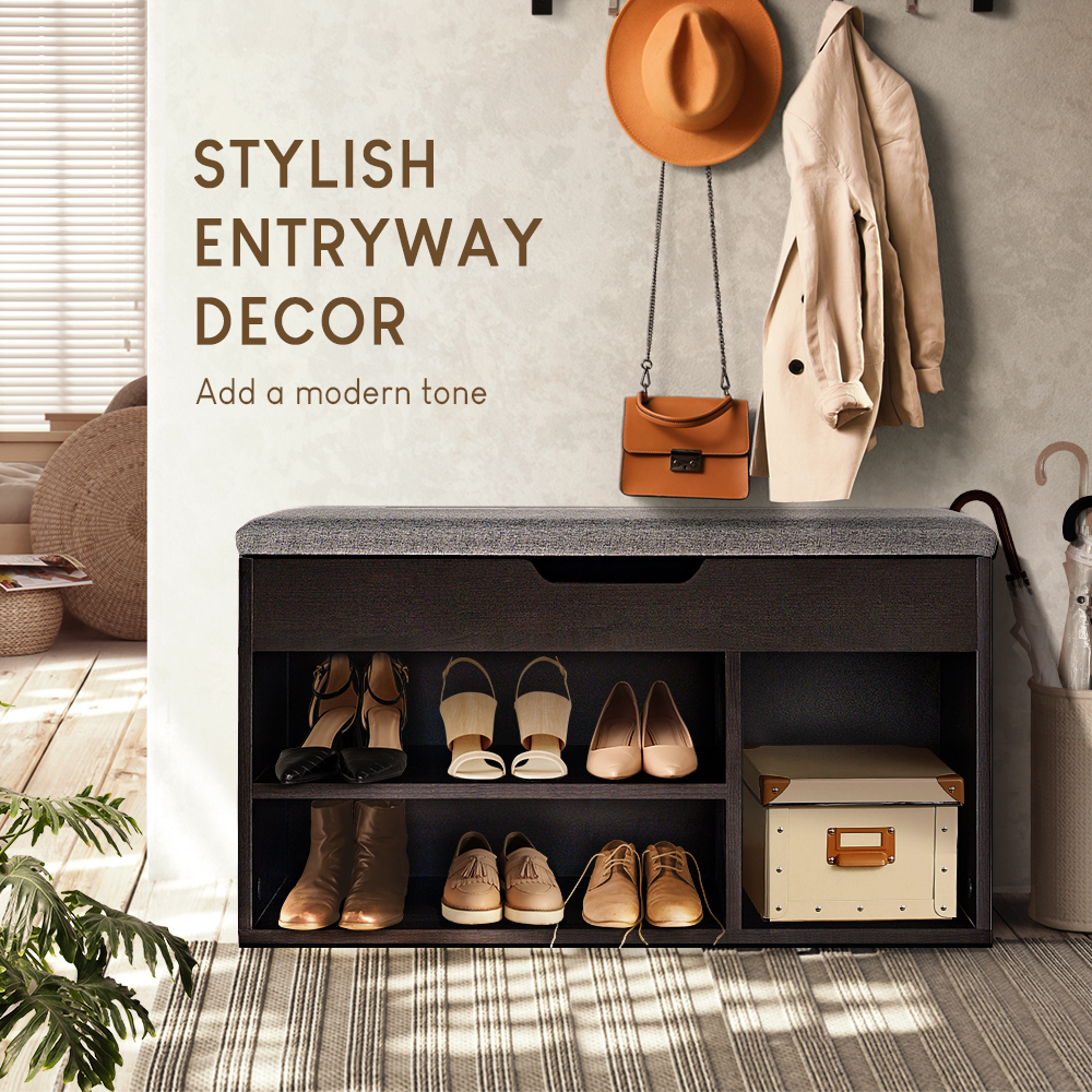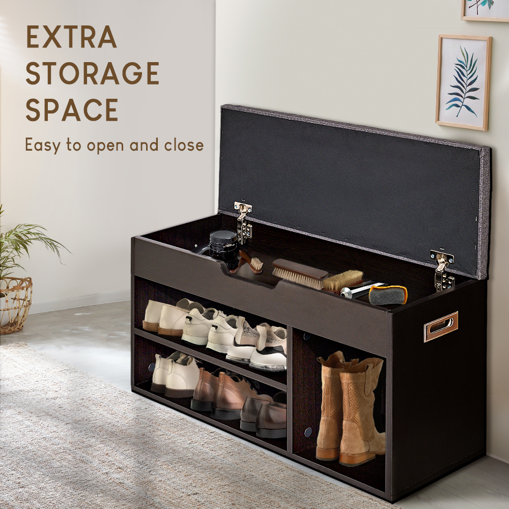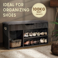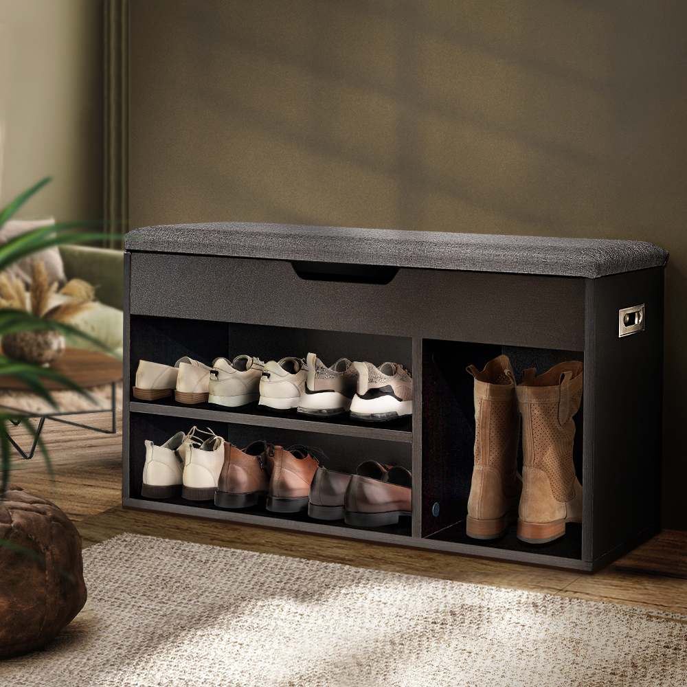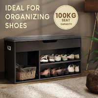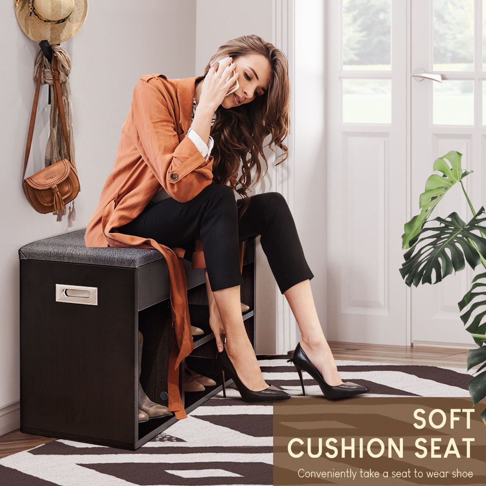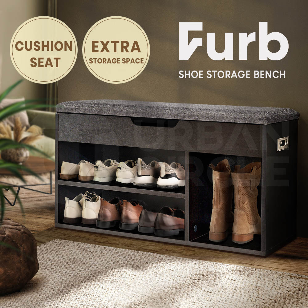 Organise and freshen up space with a modern and functional Shoes Cabinet Bench. The Furb Shoes Cabinet Bench is made of eco-friendly and durable materials. The seat is padded with high density foam which makes it very comfortable to sit on when you wear or take off your shoes. Its generous weight capacity is also able to withstand up to 100kg so you can feel rest assured about its reliable structure.