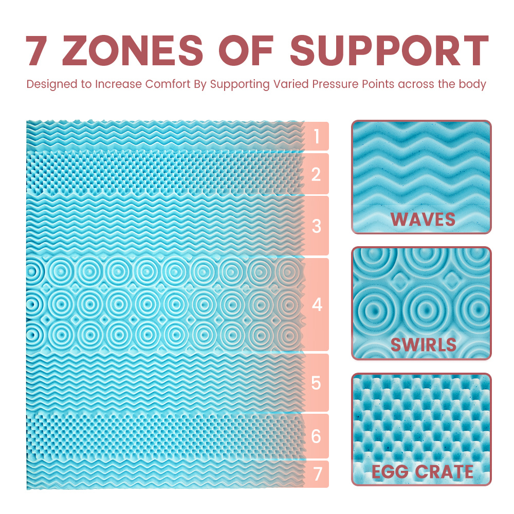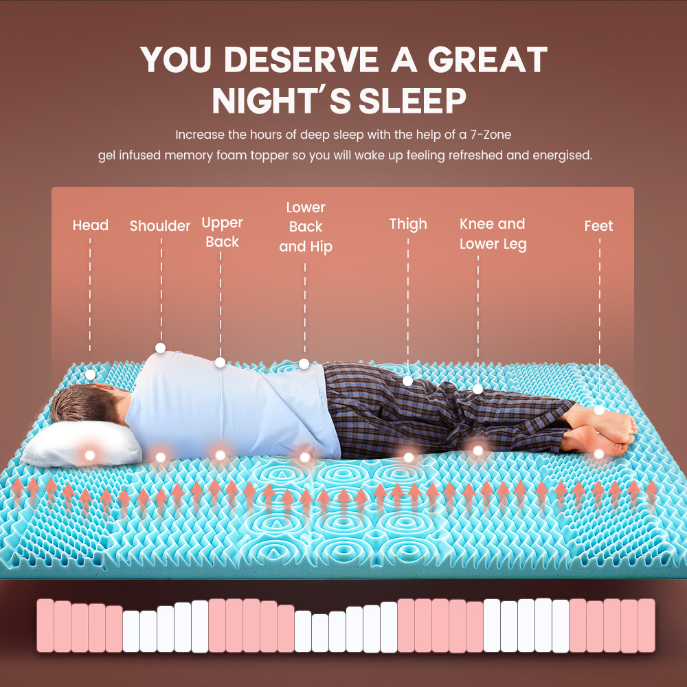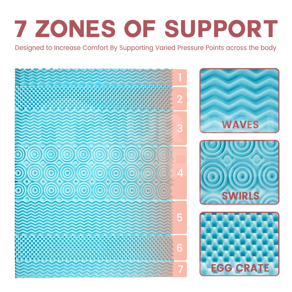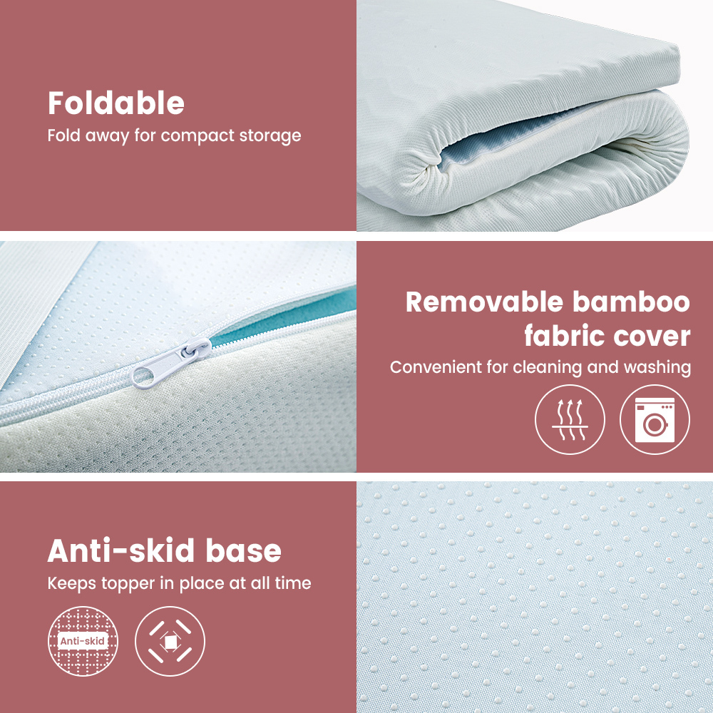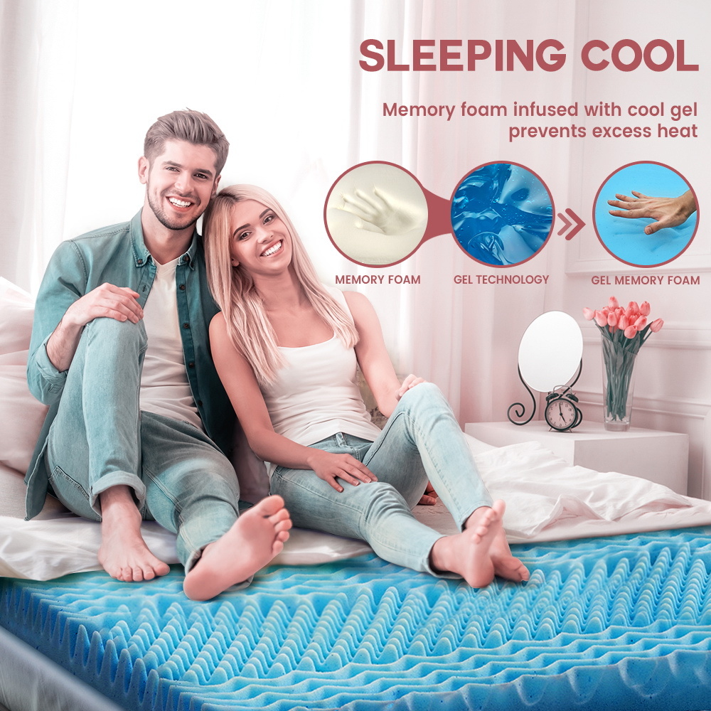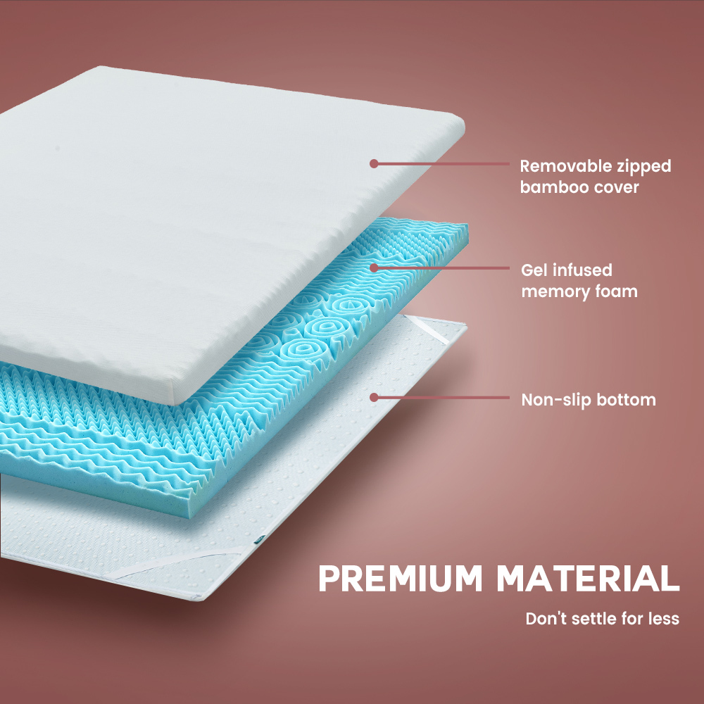 Mona Bedding Queen Memory Foam Mattress Topper Cool Gel Bamboo Cover 5CM 7-Zone